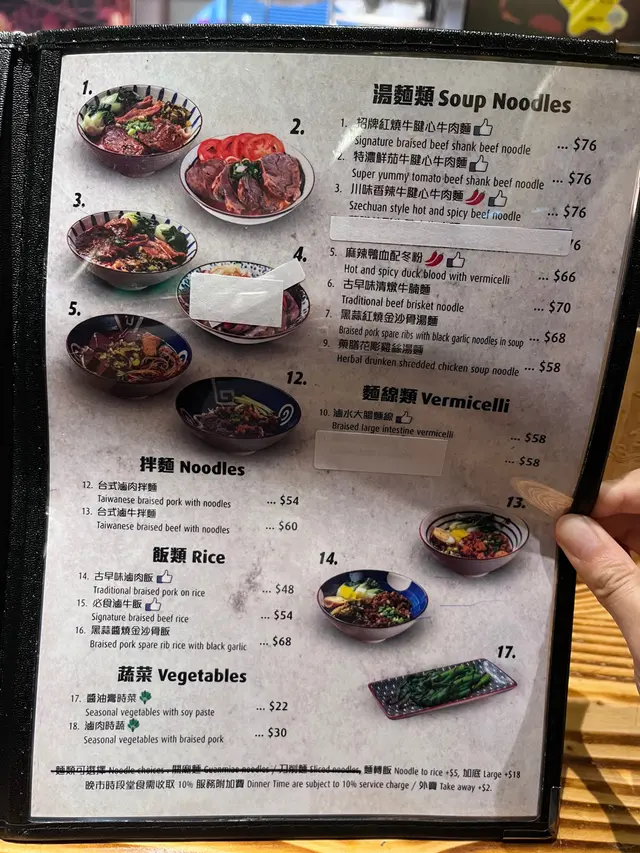 呢家餐廳都真係識得整餐牌,整三個最普通,多數人都會啱食嘅主食,一個就係招牌紅燒牛肉,另一個就係川味麻辣,另一個就係蕃茄牛肉,🐮只要你唔係完全唔食牛肉,基本上是但一個味道你都會啱食。它的牛肉都叫有三大件,都算是半筋半肉,和台灣麵或是其他台式牛肉麵的質地差不多,不太韌,不太硬,係有一嚿比較硬,就會吃得比較黐牙,另一件都算是半筋斤半肉,肥瘦均勻,咬落口感都挺唔錯:)本身睇餐牌就見到有刀削麵,不過電子落單好似冇見到呢個選項,心急落單,沒有細問,它原始的麵條,質地也不太差,帶一點口感,不算太過軟林,帶少許嚼勁,味道都唔錯,而且吸湯能力不錯。我的川味麻辣湯底,辣得來夠香,除了辣味之外,湯底帶點麻香,香味濃郁,小辣容易入口,不會一味死辣,底下又加了輕微好像調味料的湯底,味道相當不錯的。炭燒烏龍茶反而比較普通,烏龍茶味道偏向淡,即使我叫了少冰,它的味道亦都偏香淡味,沒有濃香的茶味,珍珠亦都要加$5 ,份量不怎麼多,只有少量的珍珠,雖然珍珠都算煙韌,不過不算特別多,加$5有少少唔抵,不過種比起就咁飲一杯台式茶好。總括嚟講,佢一個餐都要$70-$80 ,其實我諗比尚青都唔會差得太遠,價格不算便宜,以普通麵條來說,可能現在這個價錢都不太貴,不過質素算是普通而已。不過呢間台式,唔知旁邊啲位係咪沙發位,中間的位置,木凳超細張,屎忽大啲坐落都覺得太窄,像極窄的木板凳而已可能因為咁,對面馬路你見到韓國食店或是附近有些少美食店,比這間台式食店更加多人,因此呢間台式食店,或是旁邊的燉湯餐廳,都要企啲人喺門口做招來。🙈查看更多