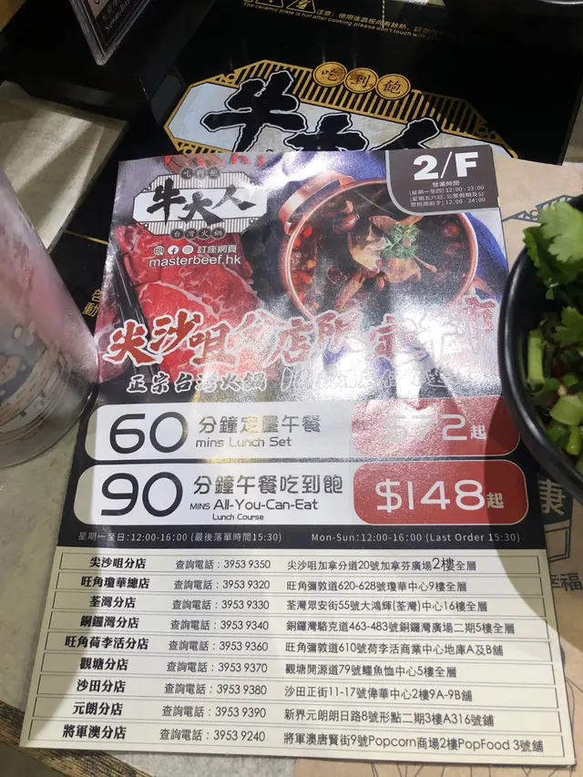 牛大人台灣火鍋吃到飽 (加拿芬廣場) (尖沙咀) 网上订位即赚Rice Dollars 网址: https://s.openrice.com/QrLS0G5mA00 地址: 香港尖沙咀加拿分道20號加拿芬廣場2樓 电话: +852 39539350
