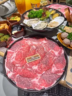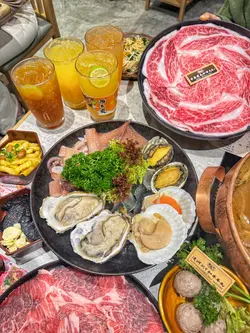 日本黑毛和牛A4+ 套餐赠送澳洲M9和牛牛丸+海鲜拼盘可以饮任指定生啤期间限定仲送江苏太湖大闸蟹大闸蟹好多膏!聪明鱿鱼沙茶锅沙茶味汤底好香浓,唔洗点酱都好够味牛大人秘方麻辣锅每次都会叫日本黑毛和牛A4+牛味浓伊比利亚黑毛猪梅肉好嫩滑海鲜拼盘有鲍鱼、生蚝、扇贝和鱿鱼全部好新鲜又大件阿嬷豆干鱼蓉面用香港老字号「永乐粉面厂」面做成好有口感虾虾霸霸脆多士呢个我劲推!上台仲热辣辣的多士脆卜卜好香口日本和牛橘梨伴豆腐几创新既配搭仲有多款台湾特色小食:乌金墨汁手作肠、海苔盐酥鸡、卤味五香鸡胗、三和夜市鸡皮卷、夜市捞脆薯都唔错以为自己去左台湾夜市鲍鱼我每次都会食番几粒好抵食虾滑墨鱼滑都劲弹牙甜品我推荐蜜桃爱玉冰几清新的另外居然有日版Häagen-Dazs雪糕大惊喜!呢个朱古力抹茶雪糕真系冇得输特饮好有港式风味芒柠蜜西米爽好饮另有酒精特饮:港式柠檬茶18+,惠顾「日本和牛」可任饮,惠顾「极上和牛」升级任饮价$68/位,其他套餐单点$58/杯惠顾指定套餐仲有得玩「东南西北·回到童年时」小游戏赢小礼物好有怀旧feel好正我就拎到牛大人公仔锁匙扣有得玩有得食…查看更多