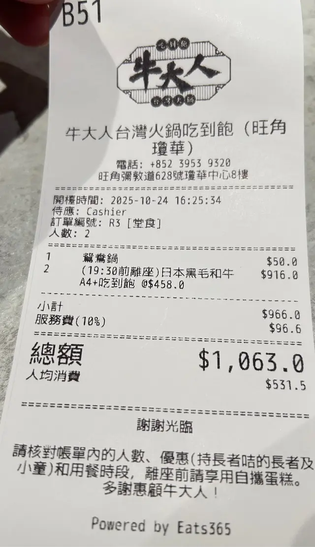牛大人台灣火鍋吃到飽 (瓊華中心) (旺角) 网上订位即赚Rice Dollars 网址: https://s.openrice.com/QrLS0yoQ6W0 地址: 香港旺角彌敦道628號瓊華中心8樓 电话: +852 39539320