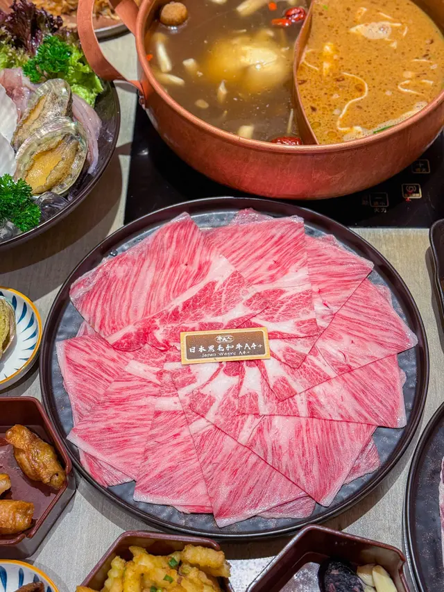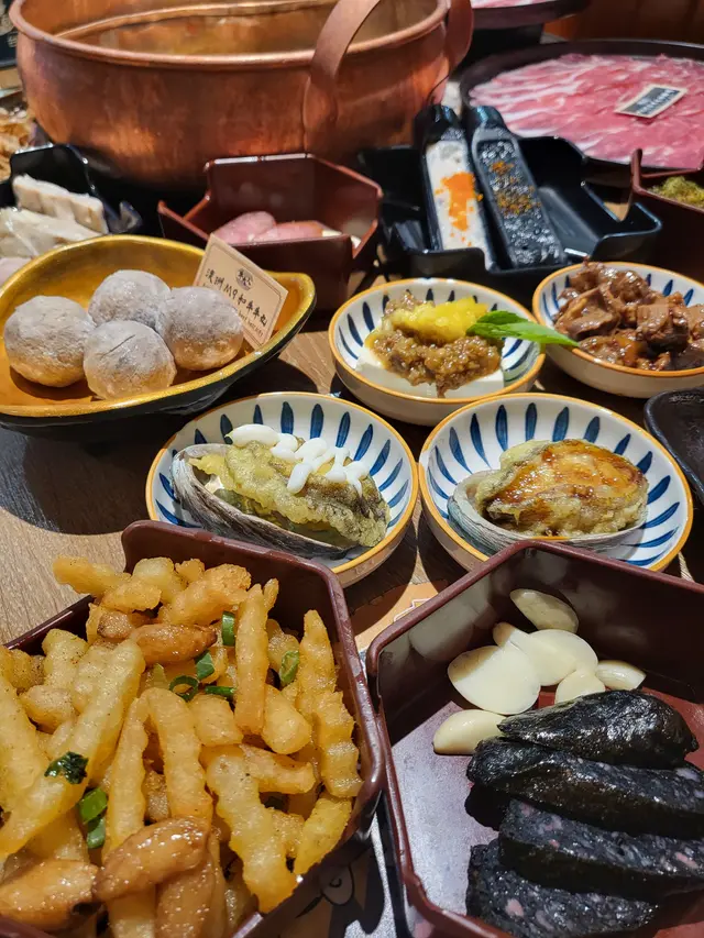 今日同老公去沙田牛大人食120分鐘日本A4黑毛和牛火鍋放題😍 A4日本黑毛和牛入口即化,油花均勻,伊比利亞黑毛豬梅肉煙韌鮮甜,真係好食到停唔到口!澳洲M9和牛牛丸,Q彈有勁,一咬爆汁,海鮮拼盤同樣新鮮飽滿!重點鮑魚三吃的炸鮑魚外脆內軟!配搭不同醬汁非常吸引🤩我們點了鴛鴦鍋,必選養生菇菌燉雞鍋和牛大人秘方麻辣鍋!養生菇菌燉雞鍋湯底濃郁,仲有期間限定送江蘇太湖大閘蟹乙隻添,真係好抵食呀😚日本和牛橘梨伴豆腐和芥末鮑魚伴豆腐同樣創新,豆腐又滑溜溜👍🏻蝦蝦霸霸脆多士外脆內嫰超好食!阿嬤豆乾魚蓉麵採用香港老字號永樂粉麵廠麵條,十分Q彈!當然唔少得夜市小食:夜市撈脆薯、烏金墨汁手作腸、三和夜市雞皮卷、海苔鹽酥雞、滷味五香雞胗,每款都鹹香酥脆,好有台港地道風味。一邊食一邊飲芒檸蜜西米爽就最適合不過!酸酸甜甜配搭西米和芒果肉好清新!酒精特飲港式檸檬茶亦很不錯!惠顧A4+黑毛和牛仲可以任飲!甜品除咗雪糕黃仙草凍之外,呢款蜜桃愛玉冰愛玉Q彈,蜜桃香甜,亦非常值得一試!環境熱鬧舒適,店員服務親切,仲有童年經典遊戲玩添!2/12前店內玩🏮「東南西北·回到童年時」活動即送童年玩具/ 牛大人小禮品🏮一份,期待下次再來!…查看更多