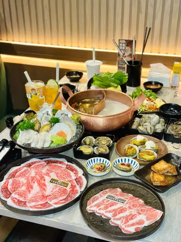 ❤︎ 日本黑毛和牛A4+🍲 我自己系牛大人Fans❤️中意佢地选择多,食物质素又好😆今次黎见有期间限定汤锅,试左个养生菇菌炖鸡锅🐤🍄‍🟫饮落好舒服好滋润✨仲有淡淡天然嘅鲜味🐮🥩套餐卖点系A4黑毛和牛任食😍细致嘅油花好似大理石纹甘靓,脂肪含量好高做到入口即化,肉感仲好细腻柔软而伊比利亚黑毛猪梅肉都不错,肉质嫩滑,有甜甜肉香🐷⚠️套餐仲送澳洲M9和牛牛丸2粒、海鲜拼盘、任食鲍鱼第一轮野食已经超级丰富,仲要样样新鲜好味😋🩵特别推荐鲍鱼三食👍🏻醉鲍鱼渗满花雕酒,爽弹不韧两款炸鲍鱼脆浆够薄,配搭两款特色酱汁够特别!惊艳嘅仲有海鲜拼盘里面嘅鲩鱼片,我平时唔中意食都觉得得掂,因为完全唔腥亦好鲜美🐟🍤小食都系值得比掌声嘅一环👏🏻试左下列呢几款,好有心机制作,款款具有特色🔸虾虾霸霸脆多士🔸日本和牛橘梨伴豆腐🔸阿嬷豆干鱼蓉面🔸乌金墨汁手作肠🔸三和夜市鸡皮卷🔸夜市捞脆薯︎🥟火锅配料更系数之不尽,好多食材都系台湾直送添🇹🇼尤其台湾手作丸类好值得尝试!鸭血都系必食plz😭蔬菜处理得干净又新鲜,仲有台湾水莲食!🍹饮品方面试左两款特饮[芒柠蜜西米爽]🥭芒果+柠檬嘅配搭,清爽解腻,酸酸甜甜的!仲有粒粒芒果肉同西米可以Jap Jap🤤[港式柠檬茶18+],🍋港式柠檬茶加入酒精~入口几有层次,微醺之选喔😏A4和牛套餐仲有得任饮添👅而其他套餐就可以优惠价$68升级任饮当然都有自家制冷泡茶、果汁、汽水慢慢拣🥤哈哈😆甜品环节仲有好多大牌雪糕任食添~满足死了特别想讲😳好中意佢地嘅台湾华语歌曲Play List查看更多