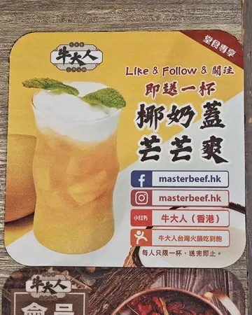 首次去牛大人观塘店,环境好大、好新、好企理,未食先赞一个👍🏻选择了日本A4+黑毛和牛吃到饱套餐,可于两小时内任点任食,附送澳洲M9和牛牛丸、海鲜拼盘及任食多款不同烹调方法的熟食鲍鱼。餐厅这阵子正推出「炎夏椰乐祭」限时活动,以椰子为主题,由汤底到甜品都可以看到椰的踪影,椰子控快订枱了!汤底选择了鸳鸯锅,其中一边选了木瓜椰皇嫩鸡锅,另一边选择了阿嬷养生浓汤锅,汤底真材实料,少盐少油。前者木瓜超甜,并散发著椰皇的香气,超美味!养生锅有姜味,汤底很清,感觉滋补养生🫶🏻据网上资料,牛大人火锅的汤底由台湾师傅亲自主理,以真材实料熬制,不含味精。每回光顾都必定在汤滚起后先喝一回。另外,椰主题方面还点了特调鸡尾酒--冰柠伴椰,朋友大赞。我试了香芋椰浆脆脆,最后还试了movenpick的椰子雪糕,啖啖椰肉,十分赞!肉类选择多,牛以外,猪、羊、鸡都有。当中日本黑毛和牛A4+和伊比利亚黑毛猪梅肉的质素非常高,没想到任食都不会将货就价,单就目测的色泽已知新鲜! 海鲜拼盘有生蚝、扇贝、鲍鱼和鳝,各样皆新鲜。 手机落单的食物选择非常多,自助区的食物选择亦多👍🏻饮品方面,多款茶饮可无限量翻点,自助区亦有海量饮品。甜品推介仙花双圆和自助区的movenpick雪糕,竟然有creme brulee味呢!餐厅还推出不少优惠:设"学生狂欢时段",凭全日制学生证于星期日至四晚上9时后入座可享:「美国特级安格斯」套餐减$30、「澳洲极上和牛」套餐减$60、「日本黑毛和牛」套餐减$90。所有顾客皆可以参与"知识就是折扣",通过答题赢取餐饮折扣等优惠,只要答中4题,即送鲍鱼小吃拼盘;答中5题,下次惠顾吃到饱套餐可全单打八五折追踪牛大人社群媒体,包括社交平台,可获赠「椰奶盖芒芒爽」 ー杯。查看更多