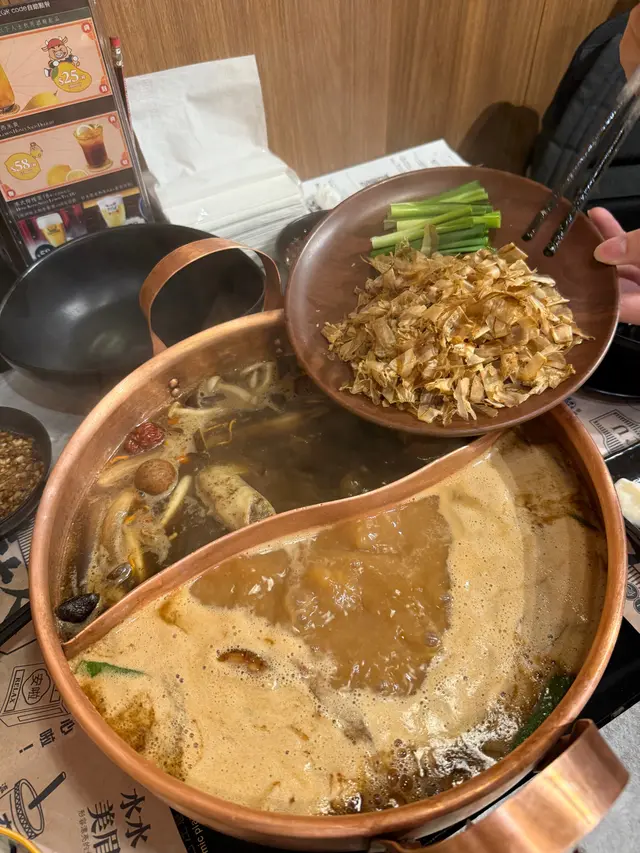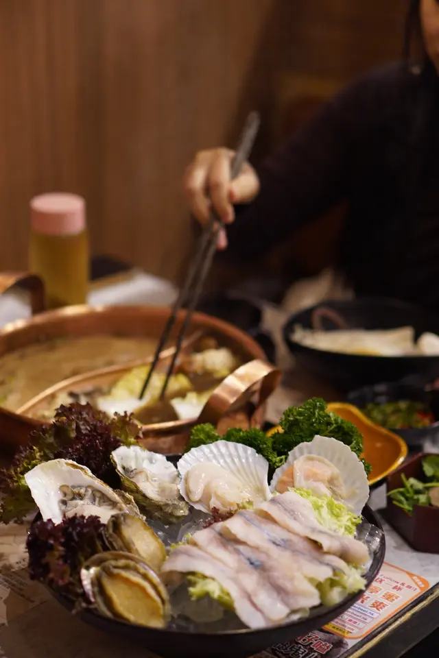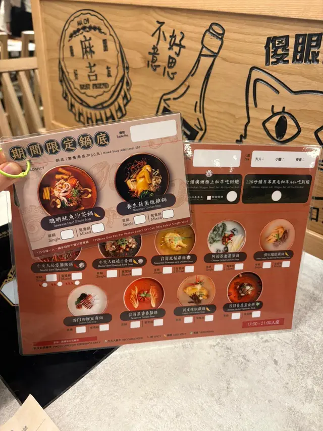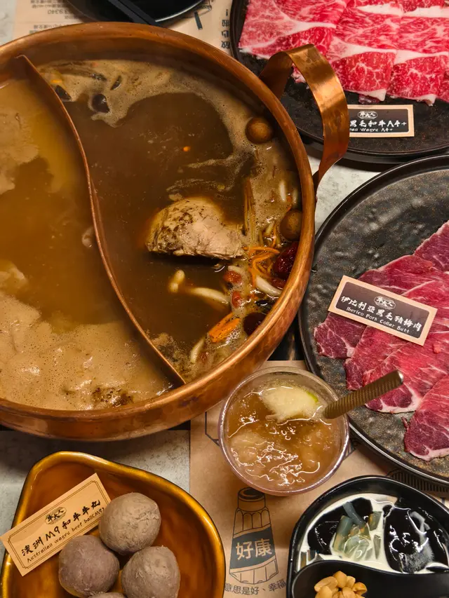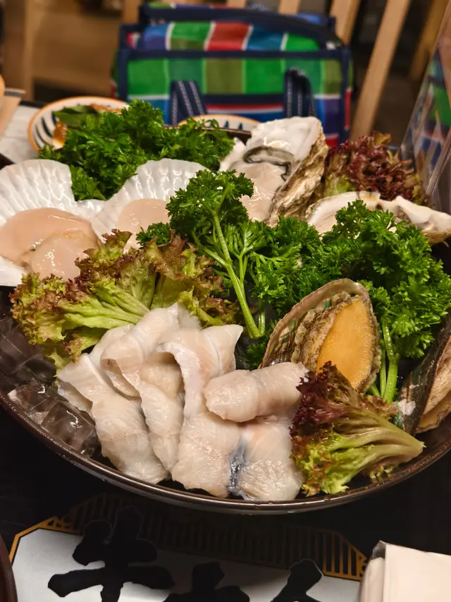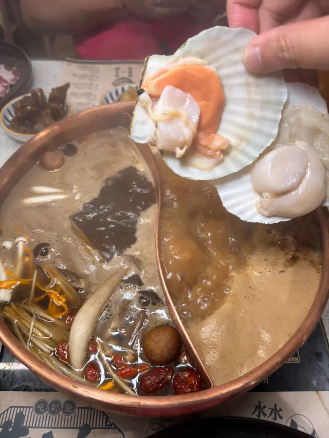 朋友知我大食帶我去食牛大人最新日本黑毛A4和牛套餐,全部上得好快超開始好豐富,果然真食到超飽😆日本黑毛和牛送M9和牛牛丸和海鮮拼盤大大碟,有生蠔鮑魚鱔片,生蠔熟咗都依然好大只脹卜卜鮮甜☺️估唔到牛丸真有傳說中彈彈牛丸感覺,我哋掛住傾計完全忘記湯內和牛,隔了幾分鐘都依然嫩滑無比,牛脂肪分布均勻,入口即溶肥而不膩,牛香味十足🤩*伊比利亞黑毛豬梅肉* 肉質細嫩多汁,味道豐富,口感層次鮮明。 即叫期間限定經典鴛鴦鍋(聰明魷魚沙茶鍋+養生菇菌燉雞鍋)茶鍋香濃帶鮮,搭配養生菇菌燉雞鍋大半只雞在湯內,味道層次豐富,2款既有濃郁也有清淡,食得好自在。 驚喜嘅多款特色鮑魚料理(美乃滋鮑魚酥、柚子燒汁鮑魚、古法醉鮑魚)有多款創新做法,美乃滋鮑魚酥外脆內嫩,柚子燒汁帶清香果味,古法醉鮑魚醉得入味又保留鮮甜。吸引到我仲有懷舊系列菜式-*和牛橘梨豆腐*酸甜配合得好,相當開胃🤤*蝦蝦霸霸脆多士*香脆彈牙而不油膩👏*阿嬤豆乾魚蓉面*感覺好地道,又帶住濃濃嘅傳統風味,仲有豆乾好滋味,魚蓉炒麵味道滿足!而且份量啱啱好好有心思。*烏金墨汁手作腸*香濃又創意,墨魚🦑彈牙。其他仲有三和夜市雞皮卷、海苔鹽酥雞、夜市撈脆薯等懷舊味道同新潮做法結合。 特色甜品芒檸蜜西米爽清新又解膩,蜜桃愛玉冰同伏特加特調嘅港式檸檬茶18+,有果香又有酒香,非常配搭。還有好多台灣直送的蔬菜都好新鮮,餐廳調味醬料非常廣泛。走時候服務員叔叔溫馨提示我食雪糕,我哋九秒九去拿,飽都要食🤣…查看更多