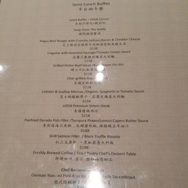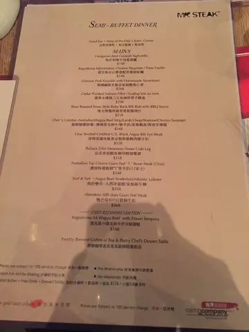第一次写食评,平时储埋咁多相,朋友都问我用黎做咩,我都唔知点答,谂谂下不如用黎写下食评。就拣呢间对我黎讲好有纪念性既餐厅啦~第二次黎呢到食,同同一个人黎,但关系就唔同咗,感觉好特别。环境唔错既餐厅,价位属中价,一人大概$250 (至少),set dinner 佢有两款餐牌,应该都会定期更新。一款有包沙律吧,另一款无,但就会有特别既头盘可以拣。价钱相约,后者食物会多元化啲,我就拣咗款意大利饭。男朋友就拣咗T骨牛扒。由于我本身餐无包沙律吧但佢个沙律吧相当吸引(sorry 无相,但有啲螺丝粉沙律,薯仔沙律,芝麻八爪鱼,鸭胸沙律, 重点系有青口同螺加上不同款的芝士)所以就好想食,但系如果餐唔包嘅话就要加$168先可以食沙律吧然后仲有野饮同甜品(无错系会同个餐double 左)。男朋友个餐有沙律吧但佢又话唔可以分食(well 其实我都有偷食小小,但waiter 会好尽责佢会望住所以其实都几难share)。芝士包口感有趣,唔软唔硬咁样。我个餐嘅头盘芝士酥皮田螺,田螺得四只左右,本身佢冇乜味但加芝士同酥皮成件事夹埋几OK沙律吧嘅食物全部都系拣咗三律师,唔好意思影得有啲样衰,因为好想快啲食!味道一流~我嘅主菜,唔记得真名但系件食物系:猪扒茄汁意大利饭。好消息同执嘅大利饭感觉好新颖!个汁酸酸地味道不错,个猪扒一定要大赞,好淋好软,咬咗落去好正啖啖肉。男朋友点既主菜, T骨牛扒。本身系order 5成熟,但我哋枱同隔离枱到一样,无论叫给成熟出到嚟都会系七成。味道很好,个汁唔会盖过牛味,而且唔会觉得好漏。想饮品同时会上甜品,有沙律吧嘅人就可以系沙律吧度攞甜品,餐冇包冇沙律吧嘅人就可以食当日精选。呢个牛奶布丁一般啦,因为牛奶味不够重,布丁又偏硬,所以冇乜特别。