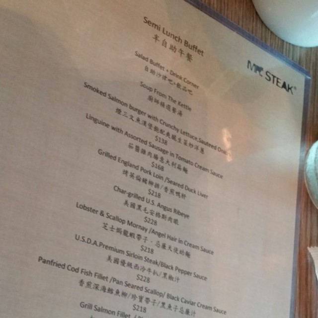 见过mr steak唔同分店好多次都未试过, 呢一日系朗豪坊分店就试左啦~比想像中好食, 可能因为之前D人都讲到唔太好~沙津同面包唔错~几好食.二人餐, 有个海鲜盘, D海鲜都OK, 唔会话好腥或者好臭, 都叫做唔错既~