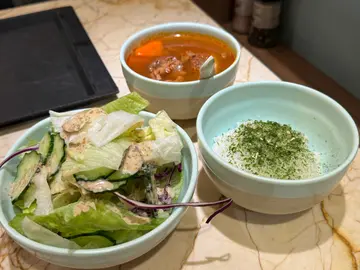 🐓 日式鸡扒($60)只系需要叫一个午餐就可以汤,白饭同沙律任食,呢个价钱系湾仔呢个算系地段高嘅价钱嚟讲性价比极高,而且佢嘅午餐系去到下就5点,非常抵食鸡扒系放系热石上枱,表面淋有烧汁,如果钟意食浓味嘅朋友可以额外加盐/黑胡椒调味或者另外点佢地嘅秘制烧汁;鸡扒皮脆肉嫩唔嚡口,送饭一流沙律有椰菜丝同西生菜,仲可以按自己口味淋芝麻酱份量汤系日式牛肉汤,鲜甜而且好香牛肉味白饭系用左珍珠米,饭味香浓,仲可以淋上芝麻紫菜饭素…Read More
