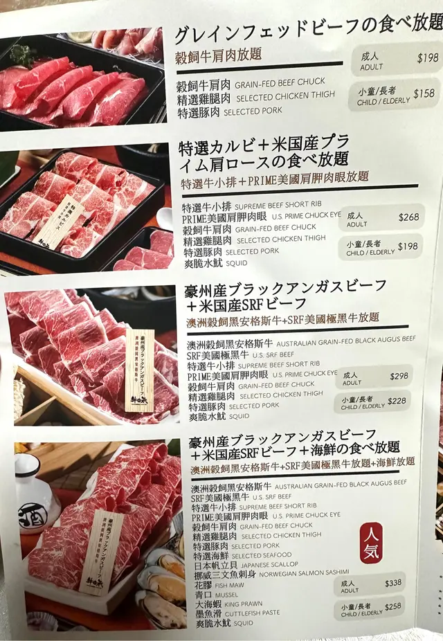 經過牛氣,被它的廣告餐牌吸引著午市60分鐘定量套餐$88起,套餐多達50款食品、沙律前菜、甜品和飲品,都是可以無限任食就是這樣,我就進去牛氣吃午市定量放題套餐。套餐一共有6款選擇,價錢最平$88(特選豚肉、雞腿肉輕量盛盒),最貴就$288(澳洲極上和牛+海鮮刺身盛盒)。由於如果選擇吃貴的套餐,那就不如吃放題,價錢也差不多,而且又是午餐、肉類又是定量,所以最後決定叫了$108(穀飼牛肩肉、特選豚肉及雞腿肉盛盒)$108套餐又有牛、又有豬和雞,可算是什麼肉都有,價錢又經濟實惠自助區也有4款熱食…查看更多