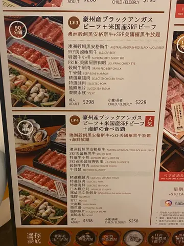钟意打边炉既我,觉得一年四季都合适。呢日去咗日式放题火锅餐厅既牛気,任饮任食,好满足呢~店内地方非常阔落,感觉以日式风格设计,装修别具一格,环境洁净舒适。赞好牛気社交平台专页,即可获得礼品一份 [御守] 及 [达摩锁匙扣]。餐点主题:韩风祭 ~ LV4 澳洲谷饲黑安格斯牛 + SRF 美国极黑牛放题 + 海鲜放题 牛気最新推出既韩风祭,有多款特色既韩国食品,蜂蜜炸鸡翼配韩国蜂蜜芥末酱、韩式酱猪手、韩式炒饭、韩式芝麻拉面、泡菜饺子、韩式萝卜焖牛肋条、韩式上汤小笼包等等,样样都咁吸引,一于点咗先。蜂蜜炸鸡翼配韩国蜂蜜芥末酱鸡翼炸至金黄香脆,入面嫩滑有肉汁,点埋韩国蜂蜜芥末酱,少少甜,带有芥末辛香,口感层次丰富。韩式炒牛肉喜欢食少辣既人就唔好错过呢款啦,牛肉用上韩式香辣调味料腌制后,肉质嫩滑,微辣好食。韩国泡菜饺子呢款系手工饺子,粒粒馅料饱满,只要轻轻渌下就可以食得,皮薄馅靓,里面又多汁,好滋味。韩国年糕条年糕放入火锅汤底一阵,直至变到软身即可食用。年糕烟烟韧韧,有嚼口,吸入汤底更美味。韩国芝麻拉面 & 韩国辛辣面辛辣面就食得多,今次试吓芝麻拉面先,面条好挂汤汁,弹牙爽口,成碗好快就食晒。火锅汤底有多款选择,亦有北海道昆布汤、秘制牛肉清汤、完熟番茄浓汤、黑蒜豚骨汤、日式牛骨浓汤(微辛)及川椒麻辣汤(辛辣)等等,想一次过试2款汤底亦可 +$10。拣选鸳鸯汤底,北海道昆布汤清甜味道,以及黑蒜豚骨汤,味道浓厚丰腴,十分鲜味,浓而不腻,香气十足,配料食材新鲜,放入汤烫一烫,吸收晒海鲜汤底嘅精华,食起上嚟更鲜甜更好味。澳洲毂饲黑安格斯牛 - 色泽鲜艳,肉质软嫩,充满浓厚嘅牛肉香味,每一啖都香气十足。SPF美国极黑牛 - 卖相已经好吸引,品质极佳,脂肪分布均匀,入口即化。美国肩胛肉眼 - 高质素嘅牛肉,肉质结实有嚼劲,油花丰富,浓郁嘅牛肉风味。日本帆立贝 - 厚身嘅帆立贝,肉质爽口,带点清甜。挪威三文鱼刺身 - 三文鱼肉质非常嫩滑,有著清新、鲜美嘅口感。花胶 - 花胶都几厚身,滋补养颜又可满足口感。大海虾 - 肉有弹性,虾味重味道鲜美。自助吧热食 :吉列炸虾 - 炸到外层金黄松脆,虾肉鲜味同弹牙。意式蕃茄肉丸 - 肉丸弹牙,吸收酱汁嘅味道,酸甜好开胃。红酒炖牛肉 - 牛肉炖至软身,鲜嫩多汁,吸入左浓厚嘅红酱汁,红酒香味散发出来。日式蟹棒冷豆腐 - 口感清爽,开胃小食。脆炸薯条 - 金黄香脆,薯味浓郁,点埋酱汁更滋味。自助吧甜品 :焦糖芝士巴斯克 - 外面焦香,内里湿润柔软,芝士味浓厚。咖啡拖肥味雪糕 - 幼滑嘅雪糕,每一口都有浓郁嘅拖肥同咖啡味,食咗好几杯。脆皮提拉米苏大福 - 外皮烟韧嘅大福,包住带点酒香嘅提拉米苏,口感层次丰富。自助区摆放多种食物及饮品供应 : 有机菇菌、本地有机农耕蔬菜、新鲜丸类、粉面、酱料、关东煮、前菜小食、汤品、水果、特饮、雪糕雪条、甜点等等,款式实在太吸引啦。…查看更多