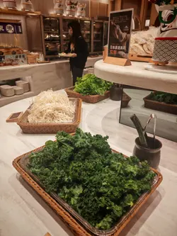 出面沙律吧仲有大量新鲜蔬菜选择,仲有啲好特别嘅人参菜羽衣甘蓝我就食返我最爱娃娃菜,生菜金菇