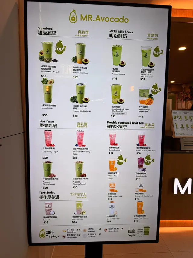 今日吾係咁肚餓想飲野當下午茶,去咗呢間好似幾健康既牛油果先生,下午4點工作日都有好多人企喺度等外賣!等左10分鐘終於有🤤🥑 牛油果羽衣甘藍奇亞籽燕麥 $55一打開膠杯嚇親!佢將成半個新鮮牛油果打左入去,仲要係熟到剛好嘅翠綠色。配上煙韌燕麥珠,軟綿得嚟帶咬口,奇亞籽泡發得啱啱好,撈埋羽衣甘藍碎,口感超豐富,飲到一半已經好飽肚!冰沙超解暑!🧀 牛油果明治鮮奶絕配芝士奶蓋 $52呢杯絕對係驚喜之作!頂層係鹹香芝士奶蓋,綿密到似食緊空氣感濃芝士🫨中層係牛油果明治鮮奶,底層居然係新鮮牛油果肉打成的蓉🫧飲落先嚐到奶蓋的微鹹,跟住係牛油果奶的醇厚,最後咬到細碎果肉,層次分明得嚟又融合得巧妙!🥛 牛油果混奶 $52朋友最近吾飲得冰,揀左呢杯難得吾係冰沙既手搖,牛油果嘅青澀同牛奶嘅甜潤平衡得剛剛好,杯底仲有少量牛油果粒增加口感。朋友飲咗一啖即刻眼仔發光話似飲緊液態牛油果布甸咁,入面仲有燕麥粒爆爆珠,推!臨走見到櫃枱又開始排長龍,呢個質素我應該會成日黎,又想試下佢個榴槤味產品,已經搵定聽日再嚟嘅理由~…查看更多