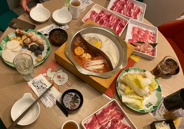 諗唔到食咩,最好係打邊爐,因為可以食有好多唔同嘅嘢食,又可以煮下。呢間嘅環境都幾好架,如果坐裡面嘅窗邊係可以見到海架,湯底可以揀兩種一鍋,或者一個人一鍋都得,我哋就要一鍋兩味,麻辣同昆布湯底,麻辣好多花椒,好香而且都幾辣,昆布湯有d甜甜地,我哋揀咗有雞肉,豬肉同牛肉食嘅餐,佢個自助吧好多唔同嘅蔬菜,例如生菜、油麥菜,亦都會有年糕、魚皮果d,飲品主要都係汽水,果汁,我會飲清熱酷,亦都會有豆腐雪糕食,建議大家留肚食呢個雪糕,真係幾清新。查看更多