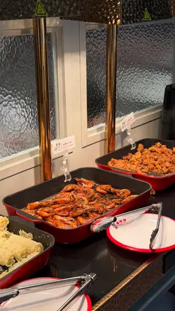 出面自助区任君驰骋,酱料区可以配自己嘅酱料,都好多选择。仲有熟食区,有紫菜响铃、炸物同熟嘅丸食,味道都唔错