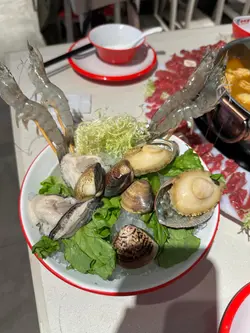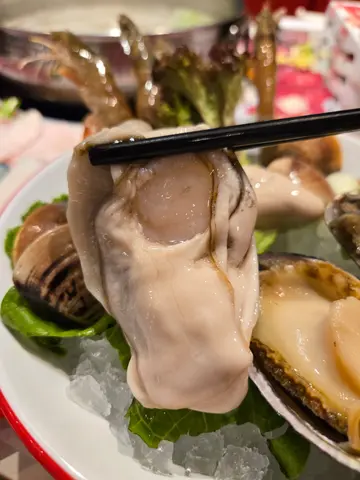 跟餐有海鲜拼盘送,有鲜虾、桶蚝、鲍鱼同花甲,倒晒落去渌,超鲜香爽弹,虾肉色泽金橙,蚝肉同鲍鱼都好滑