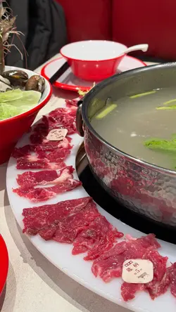 呢间主打潮汕牛肉,大胃都系第一次食咋!一嚟就连埋潮汕牛骨汤上埋个牛肉圈,有晒唔同部位嘅牛肉,有吊龙、胸口油、雪花、五花趾同匙柄,有写要渌几多秒