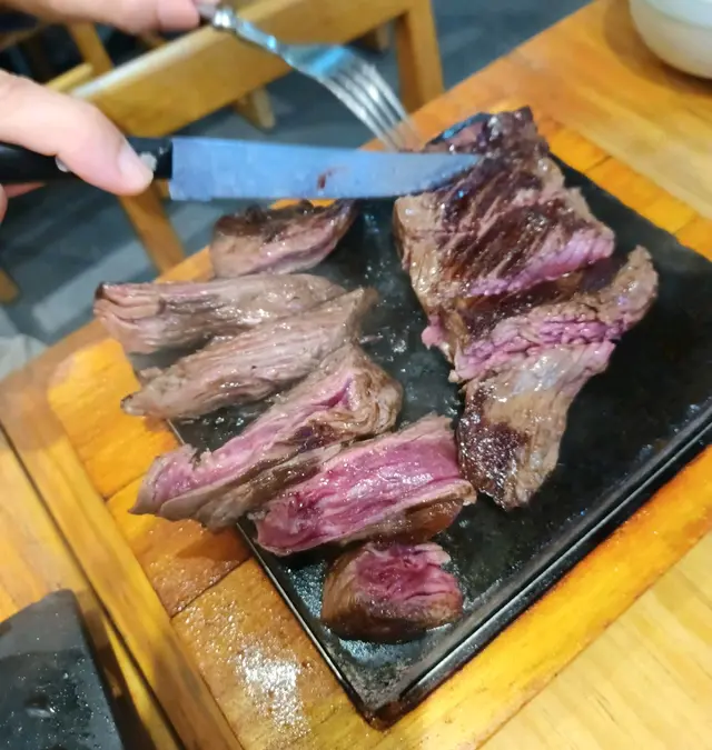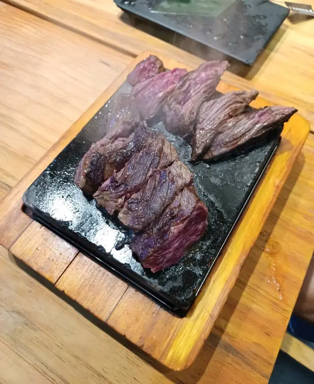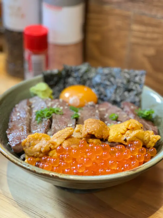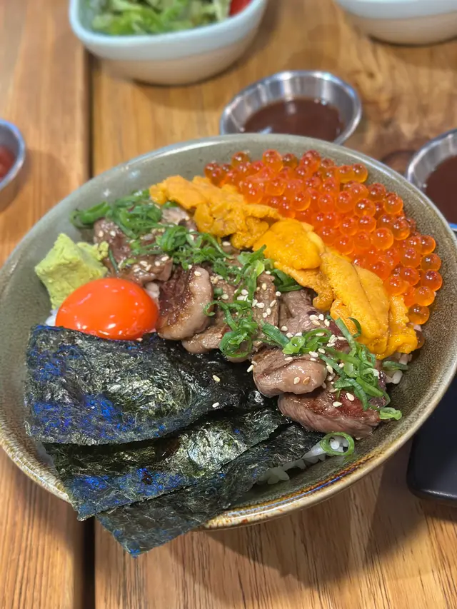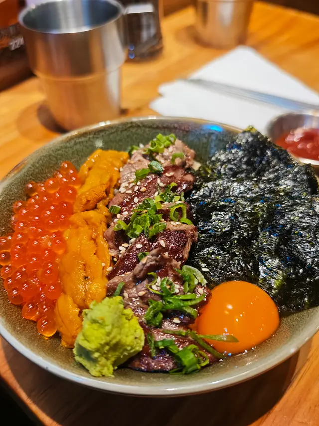 新收編了小貴婦,即享和街的寵物店為小寶寶添置用品,購物後順道這裏開餐。發覺牛県的餐牌甚為吸引,即推門內進。點了一份羽下牛扒300g $288,🎉🎉牛県是用上 USDA Prime 認證的濕式熟成牛排,肉質更嫩,肉香更濃,肉質有保證。羽下牛扒肥瘦均勻,呈現雪花紋,肉味油香平均。鐵板小爐夠玩味,生熟程度按個人喜好自由調節,配合特製調料醬汁,正到一個點 😂 😂👍👍👍升級五選三套餐 $32,有汽水、湯、沙律、薯條及白米飯可供選擇,選了面豉湯、薯條及汽水,加少少錢,成件事變得完美😍!健康的飲食餐單,必須有肉有菜,這客牛油果🥑蟹肉沙律🥗 $58,正好滿足菜蔬部分的需要。牛油果及蟹肉都是大愛,加上新鮮蔬菜及沙律汁,好味道就是這麼簡單👍👍牛縣燒肉海膽丼(燒肉)$188 ,一碗鋪滿了牛肉、海膽、三文魚子的丼飯,目測已經非常吸引。剛剛熟的牛肉,透著粉紅色的,肉味滿滿。海膽新鮮,加上三文魚籽,矜貴度即時提升,味道一流。炸九肚魚 $38,新鮮出爐,炸漿香脆,九肚魚鮮嫩滑溜,認真不錯的小食。…查看更多