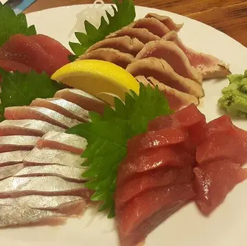 刺身拼盘:刺身鱼有三款,另有虾和贝类,件件厚切,肉质鲜嫩肥美,鱼油甘香细腻。