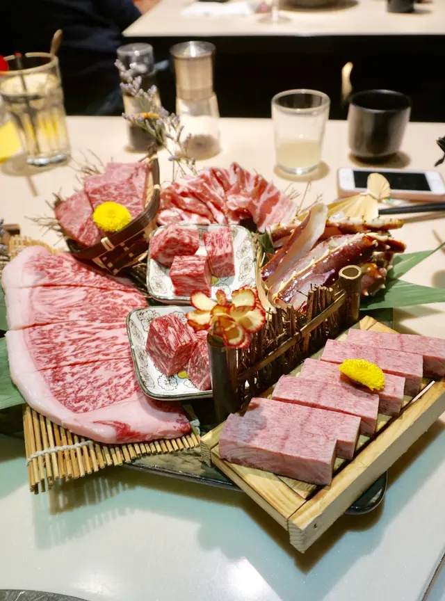 身边嘅朋友成日推介呢间烧肉,终于到我可以嚟试一试啦。早排难得同几个好耐冇见嘅好朋友 ,约出聚一聚, 几大都要豪一次, 一定要饮饱食醉。叫任何套餐或牛盛宴加hkd100/位,就可以饮指定日本清酒放题。炸白饭鱼好少有咁大条嘅白饭鱼,香脆可口, 送酒一流。刺身五点牡丹虾、深海池鱼、三文鱼腩刺身、带子刺身、金目鲷刺身我觉得最正就系牡丹虾刺身 ,味道鲜甜,而且啖啖肉,又弹牙。海胆寿司海胆甘香鲜甜 ,口感creamy入口即溶。重点出场 极上和牛盛宴当中有牛肩、极上牛舌、牛颈脊、牛小排 、尾龙扒、牛腿上肉……最好就跟指示由淡味食到浓味。 职员一放牛肉落烧炉就即刻传来 阵阵牛肉香味既油香,丰腴肥美。而我最钟意食牛颈脊,既有口感,亦有浓郁牛味,充满油香。由于牛肉新鲜,我建议任何调味料/酱汁亦都唔需要加 ,最好就配白饭一齐食, 更能食出牛肉嘅原汁原味。最后食埋个甜品“芒果糯米饭 ”,真系饱到 顶上喉咙。…查看更多