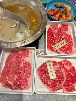 到尖沙咀的「牛站(駅)麻辣火锅放题」吃放题。餐厅很大,以现代简约风格设计,空间宽敞明亮,搭配舒适的沙发座位,木系装修简洁舒适。海胆海鲜锅汤头清甜鲜美,融合了海胆,非常鲜甜。特上牛小排油脂分布均匀,肉质细嫩,牛味浓郁;澳洲M5和牛牛香十足,嚼劲丰富且带有油香;SRF美国极黑和牛片牛味最为突出,口感柔软;封门柳则肉质鲜嫩,富有嚼劲。大爱!我最爱吃海鲜!蚝滚完后仍然非常大只,味浓郁,带有微微的奶油质感,体型饱满且毫无腥味;兰花蚌、白鳝片、象拔蚌片、鲩鱼片、鲍鱼等海鲜均新鲜爽弹,其中沙白尤其鲜甜饱满;海螺片和墨鱼口感层次丰富,弹牙可口。还有海虾、大头虾等,两款均很大只,新鲜度满分。火锅配料手包虾肉云吞和竹笙酿虾滑均以爽弹鲜甜的虾肉制成,口感出色;花胶软腍香滑,手打虾滑则弹牙可口。自助区自助区空间宽敞,提供多款饮品,包括清酒,自家制饮品以及各式火锅配料,还有各式各样的冷盘,选择丰富。熟食熟食方面,芝麻鸡翼和炸蟹钳热辣辣上桌,香脆惹味。还有炸鸡、小龙虾、麻糬等其中炸蟹钳非常出色真的吃到啖啖蟹肉,并不是一般的面粉团!甜品甜品柜款式多样,最吸引的是Haagen-Dazs雪糕任食,还设有软雪糕机、糖水、芝士挞等甜品还有杨枝甘露饮品,质素和味道皆高!…查看更多