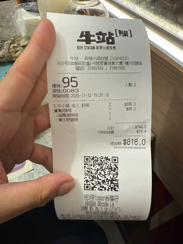 牛站(駅)麻辣火鍋放題 (尖沙咀) 网址: https://s.openrice.com/QrLS0kaeB00 地址: 香港尖沙咀加連威老道2-6號愛賓商業大廈1樓102號舖 电话: +852 31882882