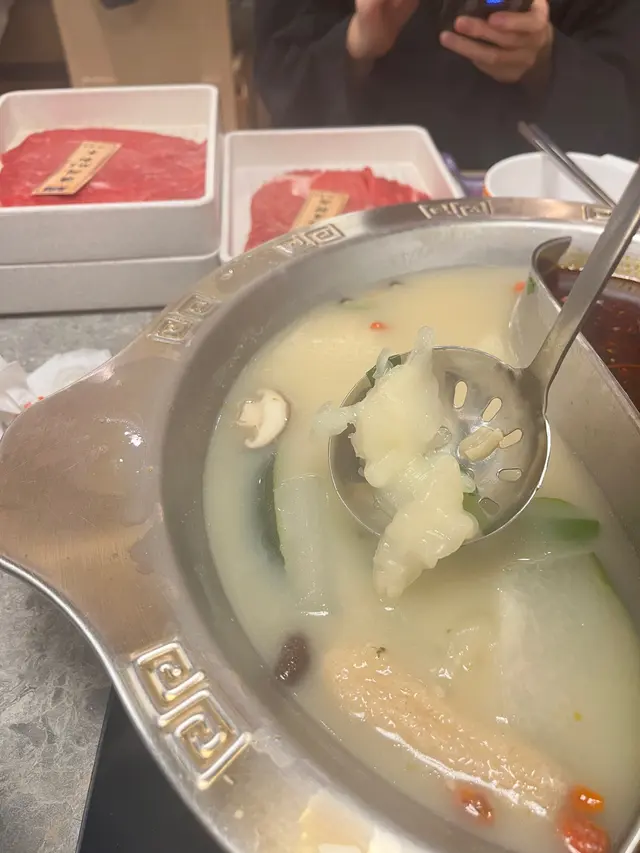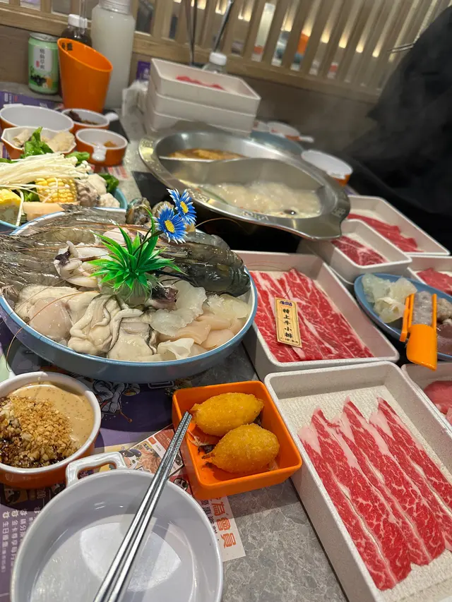 到尖沙咀的「牛站(駅)麻辣火鍋放題」吃放題。餐廳很大,以現代簡約風格設計,空間寬敞明亮,搭配舒適的沙發座位,木系裝修簡潔舒適。海膽海鮮鍋湯頭清甜鮮美,融合了海膽,非常鮮甜。特上牛小排油脂分佈均勻,肉質細嫩,牛味濃郁;澳洲M5和牛牛香十足,嚼勁豐富且帶有油香;SRF美國極黑和牛片牛味最為突出,口感柔軟;封門柳則肉質鮮嫩,富有嚼勁。大愛!我最愛吃海鮮!蠔滾完後仍然非常大隻,味濃郁,帶有微微的奶油質感,體型飽滿且毫無腥味;蘭花蚌、白鱔片、象拔蚌片、鯇魚片、鮑魚等海鮮均新鮮爽彈,其中沙白尤其鮮甜飽滿;海螺片和墨魚口感層次豐富,彈牙可口。還有海蝦、大頭蝦等,兩款均很大隻,新鮮度滿分。火鍋配料手包蝦肉雲吞和竹笙釀蝦滑均以爽彈鮮甜的蝦肉製成,口感出色;花膠軟腍香滑,手打蝦滑則彈牙可口。自助區自助區空間寬敞,提供多款飲品,包括清酒,自家製飲品以及各式火鍋配料,還有各式各樣的冷盤,選擇豐富。熟食熟食方面,芝麻雞翼和炸蟹鉗熱辣辣上桌,香脆惹味。還有炸雞、小龍蝦、麻糬等其中炸蟹鉗非常出色真的吃到啖啖蟹肉,並不是一般的麵粉糰!甜品甜品櫃款式多樣,最吸引的是Haagen-Dazs雪糕任食,還設有軟雪糕機、糖水、芝士撻等甜品還有楊枝甘露飲品,質素和味道皆高!…查看更多