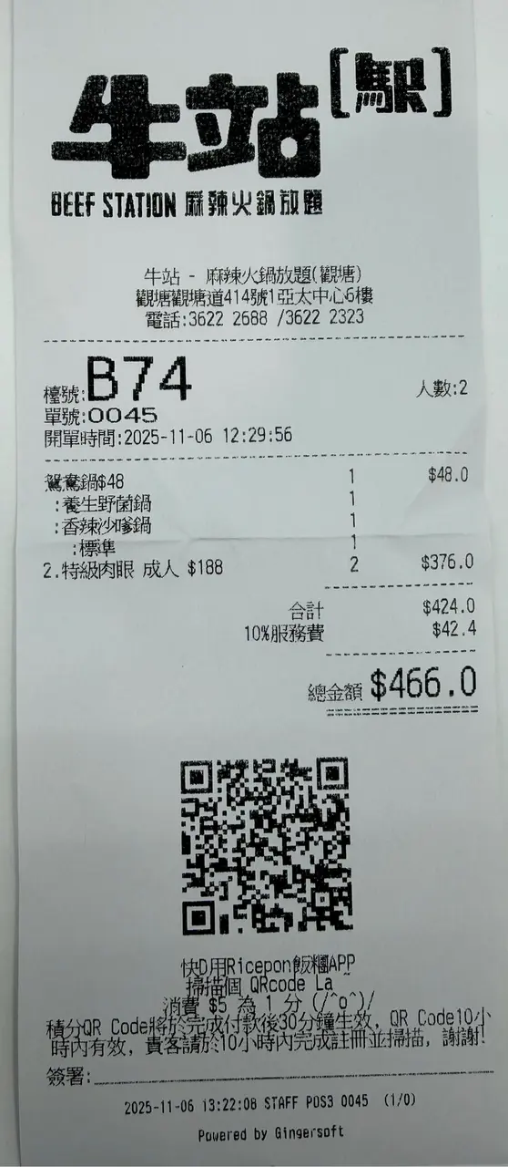 牛站(駅)麻辣火鍋放題 (观塘) 网址: https://s.openrice.com/QrLS0mTmB00 地址: 香港觀塘觀塘道414號1亞太中心6樓 电话: +852 36222688