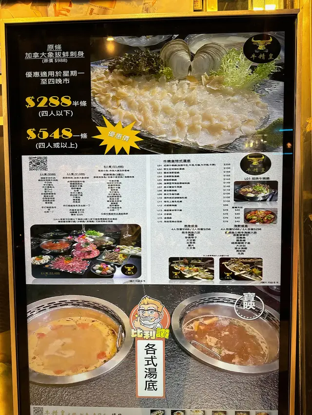 ♡ 九龍城高質火鍋店|牛精皇 ♡-天氣咁凍 最啱就係去打邊爐㗎啦九龍城一向都有唔少嘅火鍋店 @niujingwong 而且好多都好高質添 今日就嚟到牛精皇 佢最出名就係食材新鮮 而且仲好足料添- ♡ 清潤雪耳海底椰豬肺鍋 ♡ $148呢啲天氣 最啱就係飲海底椰豬肺湯要補一補個肺 飲完真係覺得好潤喉湯料亦都好足夠✌️-♡ 象拔蚌刺身 (半條)♡ $288份量都幾多 ,口感爽脆,味道鮮甜-♡ 本地手切肥牛頸脊 ♡ $368 牛頸脊好新鮮 而且都幾大塊 牛味濃郁 下面仲有乾冰 溫度保持得好好 👍🏻-♡ 極品安格斯牛柳粒 (半份)♡ $118牛柳粒雪花勁靚,超級粉嫩 肉味香濃,入口即溶。-♡ 蟹籽墨魚滑 ♡ $60墨魚🦑滑好爽口彈牙勁大份~ 食到勁飽呀-♡ 桂花蚌 (半份)♡ $128幾新鮮~ 爽口彈牙。-♡ 即炸紫菜響鈴 ♡ $38 呢個勁推薦‼️ 入口好香脆 ~ -♡ 竹蔗茅根水 ♡ $48 打邊爐必備嘅✌️-❥#⇢店鋪資料:牛精皇 (九龍城)九龍城福佬村道60號地舖## 🔍尋找同區美食📍➾ #礦泥黃X九龍城-…查看更多