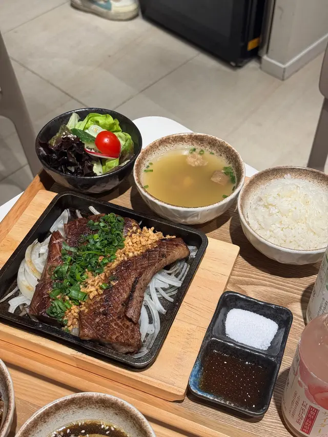呢間餐廳係Tera Dining Group 嘅全新品牌!位於佐敦廟街的牛舌食堂,最近新店開幕,主打極致牛舌。店內裝修簡約,以日式風格為主。另外,餐廳仲做緊新開優惠,所有御飯及鐵板買一送一。‼️‼️餐廳新開優惠‼️‼️~所有御飯及鐵板買一送一~(優惠直至另行通知)➰三重牛舌御重盒套餐大推三重牛舌御重盒套餐。一個飯盒可以食到牛舌三個唔同嘅部位。牛舌芯最軟嫩,切得厚,仲呈現粉紅色嫩滑嘅肉質,食落去有嚼勁但唔會韌。牛舌尖部位比較有彈性,而牛舌筋則帶點爽脆口感。簡單沾少少海鹽或七味粉,就能帶出牛舌嘅原味。套餐附的洋蔥牛舌湯味道清甜,野菜沙律也很新鮮。➰頂級安格斯牛板腱佐牛舌尖頂級安格斯牛板腱肉質軟嫩,油花分布平均,配上解膩嘅柚子醬油真係好好味。旁邊的牛舌尖則提供了不一樣的口感,配以自家製蔥油味道都好夾。查看更多