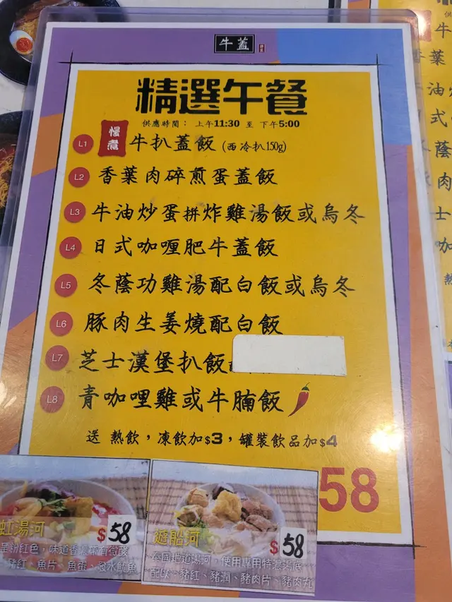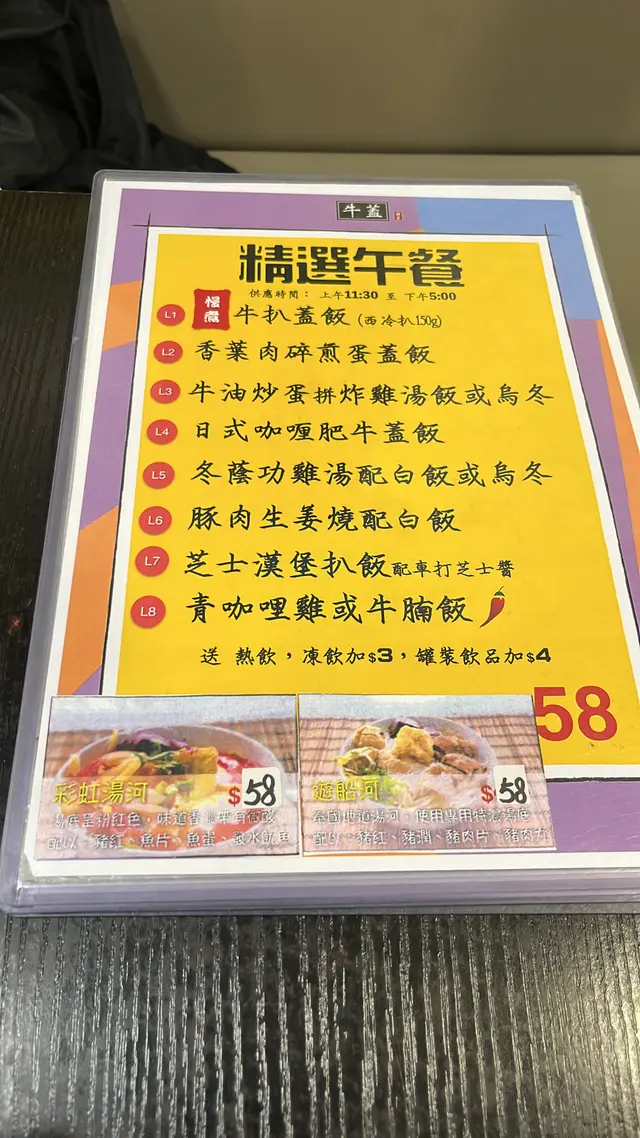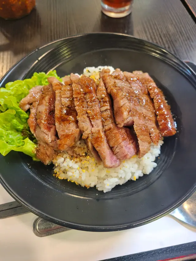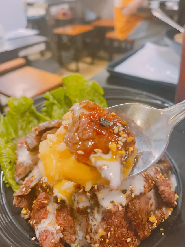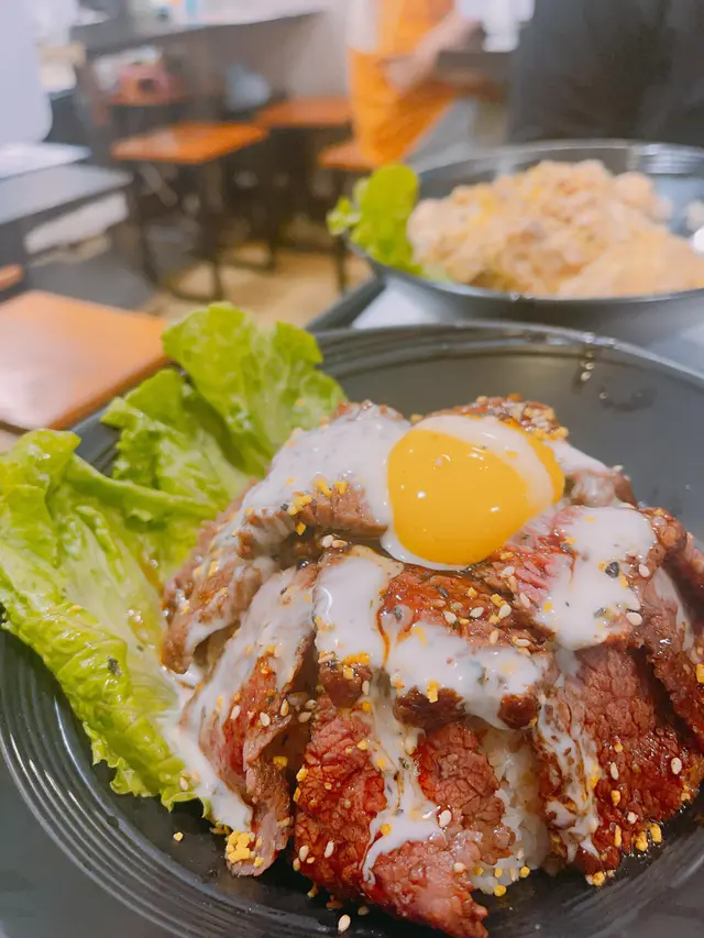 屯門平價慢煮牛丼飯🍛🥓.ᐟ.ᐟ𓌉𓇋芝士漢堡扒飯 $58漢堡扒有孜然粉調味,食起嚟唔會好乾,而且面頭有熱熔芝士,廚師仲特登戒咗十字同芝士融合,整體非常滿足!lunch $58 性價比無得輸。但是漢堡通常用肥肉,脂肪含量高,熱量爆燈呀呀呀🥹⸜♡⸝營 養 估 算 :🌟722 kcalCarbs: 86gProtein: 27gFat: 30g𓌉𓇋慢煮牛肩胛飯 $76/150g $96/220g見到真係有啲失望,因為煮得太熟,同上網見到嘅相唔同TT但係因為係慢煮,所以都算嫩口。同自家製辣椒蝦醬好夾!有鮮味鹹香辣辣地。價錢非常實惠份量多,蛋白質滿滿!💡牛肩胛屬於低脂部位,建議食2/3飯(可扣20c),走沙律醬,屬健康之選💯⸜♡⸝營 養 估 算 (150g牛)🌟 665 kcalCarbs: 84gProtein: 52gFat: 12g📍牛蓋🕒Mon-Sun 11:00-21:00屯門屯利街1號華都商場地下55號舖…查看更多