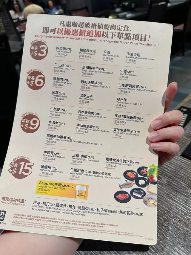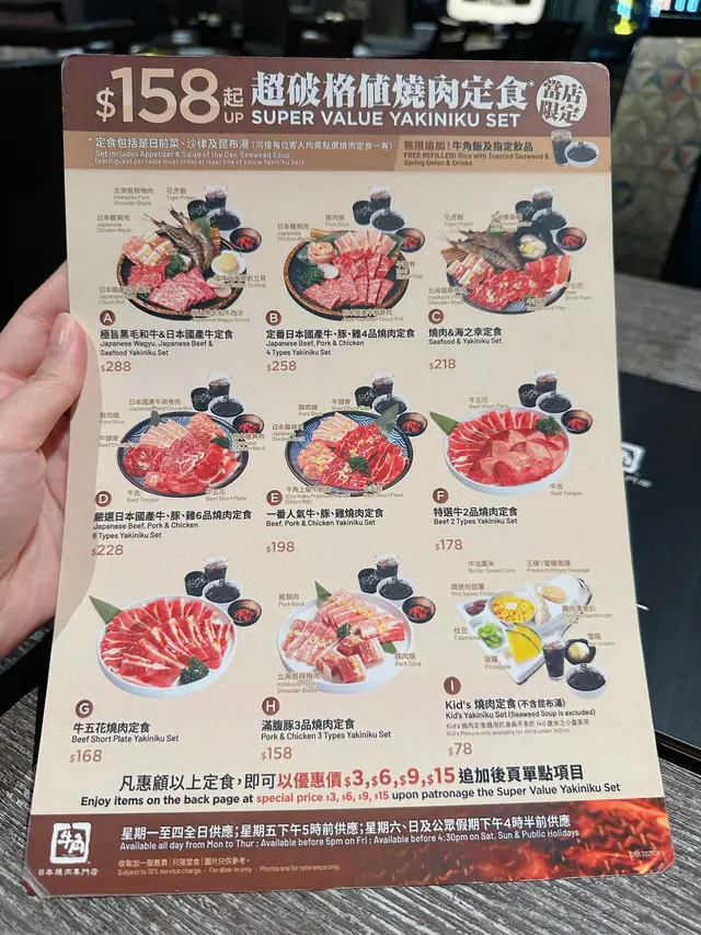 最近牛角既非放題店出左新menu見幾抵食,我本身都係牛角fans,間唔中就會去食下,今次我地就去黃埔呢邊行街兼食牛角啦😄佢地新出既超破格值燒肉定食有8個餐揀,另外一個兒童餐,最平$158就食到,套餐包一人一份前菜沙律昆布湯,自選燒肉餐,任食牛角飯同埋飲品任飲,另外仲有個追加menu,最平$3都有肉加,好抵食👏🏻B餐:定番日本國產牛,豚,雞4品燒肉定食($258)呢個餐既肉都係比較靚,有日本國產牛肩脊肉,牛頸脊,豚肉燒,日本雞爽肉,日本國產牛肩脊肉同日本雞爽肉都係追加menu冇既,同時都係比較好食既一款,牛頸脊同豚肉燒都可以追加,牛頸脊唔差過日本國產牛肩脊好多,日本國產牛肩脊就有入口即溶既感覺😋F餐:特選牛2品燒肉定食($178)呢個餐就包括有牛舌同牛五花,份量都好多,當然質素就會係B餐好,牛五花簿簿一塊好易燒燶,要留意,牛舌就幾彈牙,兩款肉都係追加部分可以再加😉$3追加項目🈹豚肉燒,豬頸肉$6追加項目🈹日本新潟雞腎,牛舌$9追加項目🈹王樣!蜜糖香腸,牛油廣島蠔$15追加項目🈹燒鰻魚,塩味北海道帆立貝 幾款追加項目我覺得$6既雞腎,$9既廣島蠔,$15既燒鰻魚係比較出色既選擇,$3其實牛油金菇都係正👍🏻呢個定食餐我覺得好正,佢價錢平,叫到放題咁食都可能平過去食放題,同埋佢任食牛角飯同野飲呢兩項都好抵讚,其實個牛角飯不嬲都好食,不過食放題可能驚食飽左飯會食唔落肉,呢度就自己按需要加肉定係加飯,心理上會開心d,又一樣可以食到勁飽🤩…查看更多