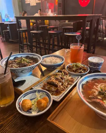 同朋友来食,店舖装修几特别珍珠奶茶,好好饮,但珍珠有d 硬牛肉面,牛肉好大块👍卤肉饭d 卤水汁唔够多,味道还可以😂