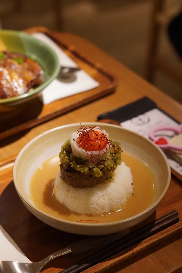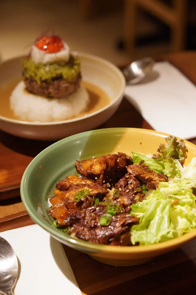 芝士漢堡扒蘭王蛋丼飯(咖喱汁)