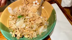 小店裝潢簡約, 冷氣充足, 唯電訊網絡接收差。All day menu 選擇不少, 首次光顧選了其限量供應的招牌手打和牛漢堡蘭王蛋飯。1) 招牌手打和牛漢堡蘭王蛋飯 $128 (配日式咖喱汁和日式泡菜)2) 雞皮餃子 (2件) $183) 蜂蜜綠茶 (凍) $5招牌手打和牛漢堡蘭王蛋飯可自選醬汁和配料, 我選了日式咖喱汁和日式泡菜。丼飯由飯作基底, 以層層疊的方式堆砌漢堡, 日式泡菜和蘭王蛋, 賣相吸睛。嚐一口咖喱汁, 咖喱香辣惹味, 質感濃稠, 雖然要求了多汁, 還是覺得不夠。飯的份量不少, 甚有黏性。和牛漢堡牛味濃郁, 既鬆軟又juicy, 可口美味。日式泡菜配上蘿蔔蓉和蘭王蛋汁同吃, 層次豐富。追加了雞皮餃子, 雞皮餃子煎炸得香口, 外表微脆有彈性, 肉質juicy。蜂蜜綠茶味道不俗, 入口透心涼。由於選了招牌手打和牛漢堡蘭王蛋飯 (霸王餐), 吃畢碗底會有驚喜, 有機會贏得免費飲品 / 小食 / 半價優惠 / $40現金券 / $1漢堡扒 / $1小食。雖然最後獲得 $40 現金券 ($8 x 5張), 但要消費每滿$88才可使用一張, 運氣實屬一般。…查看更多