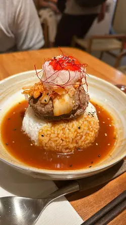 招牌手打和牛漢堡蘭王蛋飯(配日式咖喱汁和日式泡菜)$128