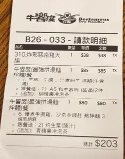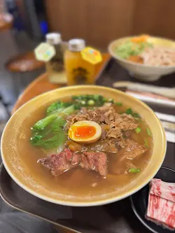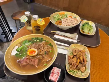 今日同友人做完Gym, 就食个lunch 补充下体力。吾知系咪做完gym,好想食肉肉,尤其系牛!所以今次,我地去左位于佐敦逸东酒店Food Hall的「牛响度」。这次品尝两款招牌套餐,从汤头到拌酱都令人惊艳。**「最强拼汤面」🍜牛骨汤底套餐($85)** 汤头以牛骨长时间熬煮,色泽金黄透亮,入口温润醇厚却不腻。牛筋软糯如胶质,牛腩松化带筋膜嚼劲,汁煮肥牛片薄切吸附汤汁,三者层次分明。搭配的拌面体偏粗韧,挂汤力强,与浓汤形成完美平衡。随餐附赠的 A5和牛慕丝,是一大亮点——外形如精致甜点,入口即化,和牛油脂香气在舌尖萦绕,颠覆对「牛肉甜品」的想像!我就加左个柳橙果冷泡茶,果香清新,成功化解浓汤的厚重感。☺️☺️**热拌面套餐🍜($80)** 这款拌面展现了对酱汁的掌控力:慢煮手撕鸡丝嫩滑不柴,沙茶金钱肚卤得入味且弹牙,烘煎胡麻酱浓稠香醇,裹满每根面条。沙茶的微辣、胡麻的坚果香与金钱肚的卤香交织,味道丰富却不杂乱。灼生菜淋上秘制肺汁,咸鲜中带蒜香,恰到好处地清口解腻。搭配的 青苹果冷泡茶酸甜清爽,与拌面的浓郁形成对比。**小食 炸邪恶菌猪大肠($38)**外皮酥脆,内里保留猪肠的韧劲,蘸上椒盐更显风味,不愧「邪恶」之名。餐厅位于酒店地下美食广场,装潢简约现代,半开放式厨房可见厨师专注料理。牛响度以创新手法演绎牛肉面,汤头、拌酱、食材搭配皆见巧思,人均消费约$100-$150,性价比高于同区餐厅。无论是追求浓郁汤头的食客,或偏好干拌面层次感的人,皆能在此找到惊喜。值得专程到佐敦一试!…查看更多