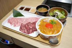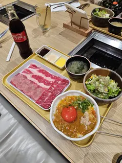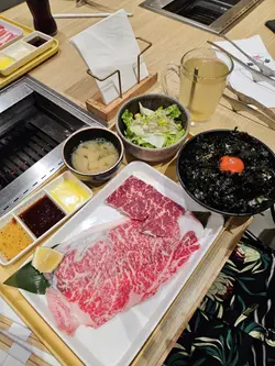 餐厅:牛魔一人烧肉地点:旺角豉油街菜式:日式烧肉餐牌:一人烧肉套餐一共有15款,分100/150/200/250/300g,价钱唔同,包御饭或者迷你乌冬,牛骨汤同沙律。御饭或者迷你乌冬都可以升级,可以加钱追加烧肉/小食/饮品等。落单用QR code。封门柳牛舌套餐 200g $138 另加一封门柳两大条,切得够厚身,原来都唔难烧熟,肉质够瘦,不过都算嫩,食落好有牛味。牛舌有八片,够厚切,好有咬口。封门柳西班牙黑毛猪五花套餐 200g $138 另加一配西班牙黑毛猪五花就有四大片,肥瘦相间,口感爽脆,唔算太肥。好欣赏呢度酱汁好flexible,可以从12款酱汁当中自选3款,好贴心。呢度肉类本身冇加酱汁,所以自选酱汁好重要。每款酱汁都好有特色,任君选择。今日试左黑椒盐酱,黑松露烧汁,韩国辣汁,焙煎胡麻汁,柠檬盐。跟餐沙律系简单沙律杂菜加粟米粒沙律,酱汁系胡麻酱。跟餐牛骨汤有豆腐粒同葱花,唔会太咸。日式冷面乌冬 加$28 另加一冷乌冬有青瓜丝,红萝卜丝,秋葵,半只熟蛋,伴有柠檬片份量唔多,加有好多冰粒降温,消暑之选。手拆纯蟹粉蟹黄兰王拌大光面/乌冬 加$78 另加一手拆纯蟹粉蟹黄兰王拌乌冬原来分量好多,乌冬用木兜上,中间一只橙红色大大兰王!手拆纯蟹粉蟹黄另上,系热辣辣,蟹粉蟹黄捞有蟹肉加葱花。我成兜乌冬倒落去捞,味道系刚好,口感滑溜而唔会过咸带适量蟹味。牛魔黑松露和牛他他 $78 另加一牛魔黑松露和牛他他系好多新鲜苹果切粒面头加上唔少生和牛条,中间一只鹌鹑蛋黄,伴有黑松露酱同葱花。黑松露酱味道适中,捞埋所有配料食入口爽脆滑溜都有,味道清新中带和牛油香。特大虎虾 $28 另加一特大虎虾真系几大只,烧虾虾壳极香 虾头有膏,虾肉爽口又鲜甜。伴有柠檬角。菠萝特饮,巨峰特饮 各加$15特饮有粒粒椰果可以咬,而味道唔会过甜,够解渴。今餐所有肉类海鲜都好正,食完唔会成头成身油烟味。每个座位都提供较剪方便自己将烧肉剪细入口。餐厅装修干净卫生。…Read More