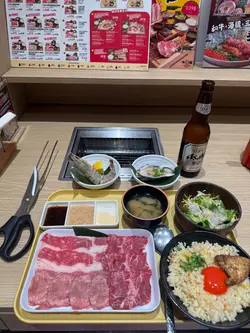 餐廳:牛魔一人燒肉地點:旺角豉油街菜式:日式燒肉餐牌:一人燒肉套餐一共有15款,分100/150/200/250/300g,價錢唔同,包御飯或者迷你烏冬,牛骨湯同沙律。御飯或者迷你烏冬都可以升級,可以加錢追加燒肉/小食/飲品等。落單用QR code。封門柳牛舌套餐 200g $138 另加一封門柳兩大條,切得夠厚身,原來都唔難燒熟,肉質夠瘦,不過都算嫩,食落好有牛味。牛舌有八片,夠厚切,好有咬口。封門柳西班牙黑毛豬五花套餐 200g $138 另加一配西班牙黑毛豬五花就有四大片,肥瘦相間,口感爽脆,唔算太肥。好欣賞呢度醬汁好flexible,可以從12款醬汁當中自選3款,好貼心。呢度肉類本身冇加醬汁,所以自選醬汁好重要。每款醬汁都好有特色,任君選擇。今日試左黑椒鹽醬,黑松露燒汁,韓國辣汁,焙煎胡麻汁,檸檬鹽。跟餐沙律係簡單沙律雜菜加粟米粒沙律,醬汁係胡麻醬。跟餐牛骨湯有豆腐粒同蔥花,唔會太鹹。日式冷麵烏冬 加$28 另加一冷烏冬有青瓜絲,紅蘿蔔絲,秋葵,半隻熟蛋,伴有檸檬片份量唔多,加有好多冰粒降溫,消暑之選。手拆純蟹粉蟹黃蘭王拌大光麵/烏冬 加$78 另加一手拆純蟹粉蟹黃蘭王拌烏冬原來分量好多,烏冬用木兜上,中間一隻橙紅色大大蘭王!手拆純蟹粉蟹黃另上,係熱辣辣,蟹粉蟹黃撈有蟹肉加蔥花。我成兜烏冬倒落去撈,味道係剛好,口感滑溜而唔會過鹹帶適量蟹味。牛魔黑松露和牛他他 $78 另加一牛魔黑松露和牛他他係好多新鮮蘋果切粒面頭加上唔少生和牛條,中間一隻鵪鶉蛋黃,伴有黑松露醬同蔥花。黑松露醬味道適中,撈埋所有配料食入口爽脆滑溜都有,味道清新中帶和牛油香。特大虎蝦 $28 另加一特大虎蝦真係幾大隻,燒蝦蝦殼極香 蝦頭有膏,蝦肉爽口又鮮甜。伴有檸檬角。菠蘿特飲,巨峰特飲 各加$15特飲有粒粒椰果可以咬,而味道唔會過甜,夠解渴。今餐所有肉類海鮮都好正,食完唔會成頭成身油烟味。每個座位都提供較剪方便自己將燒肉剪細入口。餐廳裝修乾净衛生。…查看更多