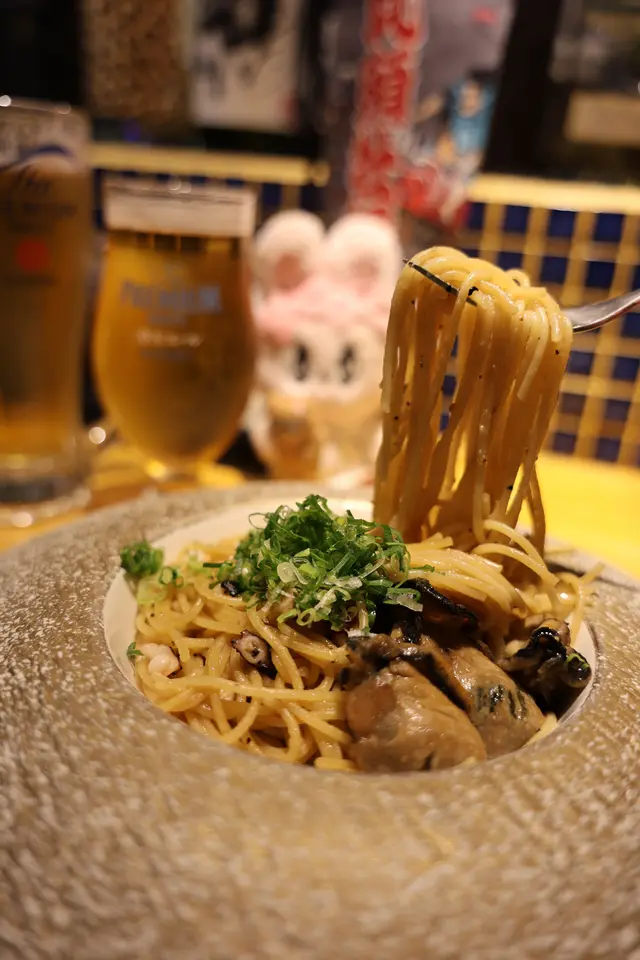 估唔到原來生蠔都有咁多種唔同嘅食法! 好有新鮮感 生蠔好鮮甜 唔同食法感覺都好唔同😚☆ 6種食法生蠔 HK$3281️⃣青檸醋海蘊2️⃣檸檬風乾火腿3️⃣甜辣醬三文魚籽4️⃣青檸魚子醬(我自己最鍾意呢個😆)5️⃣刁草檸檬蓉6️⃣土佐醋果凍☆蒜香辣椒蠔八爪魚意粉 HK$118呢個好好食!意粉質地彈牙 仲好香蒜味~而且啲蠔都好飽滿同埋新鮮☆火炙和牛沙律配黑松露沙律醬 HK$158份量都幾大,好多新鮮沙律菜配上肥美嘅和牛😛☆尾油炸豆腐伴魩仔魚 HK$78呢個好特別!炸豆腐非常香脆 上面有好多魩仔魚 口感好豐富 ☆生蠔三文魚籽釜飯 HK$228相信係呢度嘅招牌!見到好多人都有叫😝蠔肉大大隻而且好鮮甜 配埋三文魚籽食落好正😌 賣相亦都好靚!☆蛋黃醬蝦芝士玉子燒 HK$118輕鬆做到芝士拉絲效果🧀🧀🧀 芝士同玉子燒真係絕配!配埋蛋黃醬蝦大滿足!🪄生啤 HK$62 兩周年優惠買一送一(至20/12/2025)而家做緊優惠買一送一好抵飲,而且上面仲印咗勁得意嘅生蠔BB😳🤩之前完全估唔到會有!!…查看更多