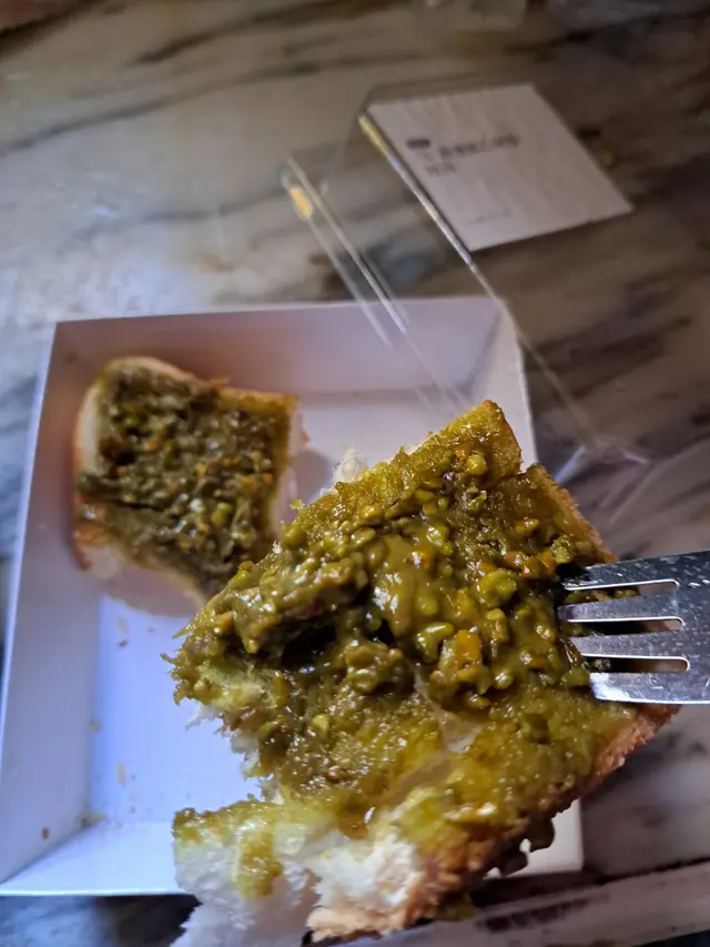 行完成日中環血拼,專登搵咗間Cafe抖抖,點開咗佢哋招牌嘅「香濃開心果厚吐司」。點知一上枱,成件嘢嘅震撼程度簡直係視覺同味覺嘅雙重暴擊!件厚多士真係唔講得笑,厚切到成兩寸高,面頭鋪滿咗一層澎湃到瀉嘅開心果醬,仲要係那種帶有粒粒果碎嘅濃稠質感,睇見已經流口水。最過分係上面仲要灑滿開心果碎同金箔,旁邊配一球雲呢拿雪糕,凍冰冰嘅雪糕接觸到微溫嘅多士,開始慢慢融化嘅畫面,真係邪惡到冇朋友!急不及待切開一嚿放入口,第一個感覺係——脆!麵包外層烘到金黃香脆,用刀切落去仲有「咔嚓」聲。咬落去裡面卻保持住超鬆軟濕潤,個質感對比已經贏咗。跟住係排山倒海嘅開心果香衝過嚟,唔係得個甜字,係真材實料嘅堅果濃香,仲帶點微微鹹味,完全唔會膩。凍嘅雪糕、暖嘅多士、脆果同軟心,幾種口感同一時間係個口入面大爆發,個滿足感真係大到難以形容!食完之後成個人好似被開心果嘅幸福感覺包圍住,雖然罪惡感爆燈,但絕對值得為佢破戒一次。以後嚟親中環,呢件邪惡厚多士肯定係我必點嘅甜品首選!…查看更多