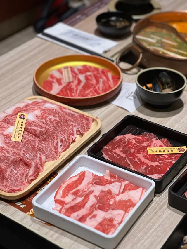 上星期母親節🌷同小朋友去咗青衣城行街,順便睇睇母親節晚餐有咩選擇,見到有間餐廳做緊打邊爐買一送一,仲有全農日本🇯🇵JA和牛食😍,啱晒我呀!位於青衣城3/F嘅犇殿台灣火鍋,係門口就見到「期間限定!買一送一・全農日本JA和牛嘉年華」呢個招牌,於是我哋就揀咗呢款啦一嚟就上咗一大盤半公斤重嘅日本🇯🇵A5和牛真係好吸睛,和牛口感幼嫩,入口即溶,油脂分佈平均,又唔會太膩。另外又試咗美國🇺🇸極佳牛肩胛肉同埋澳洲🇦🇺特選牛肉,呢兩款肉,肉味濃郁,口感都唔錯!QR code落單好方便,我地叫咗台式濃郁沙茶鍋,鍋底好香,另外仲試咗海蝦、海蜆、墨魚滑、鴨血等,好多選擇,食材新鮮除咗點餐,仲有自助區,包括台式甜品、飲品、新鮮蔬菜、小食同雪糕,最欣賞係竟然有芋圓同仙草,可以DIY台式糖水😋餐廳除咗有火鍋吃到飽,仲有火鍋套餐,啱哂細食嘅朋友!查看更多