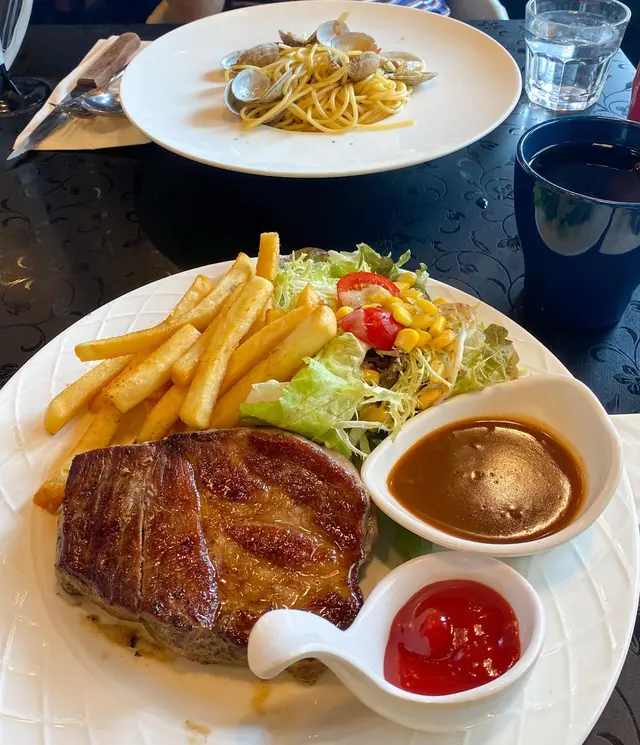 2020最後一日番工日,約埋同事行遠啲食個lunch之前經過都覺得呢間餐廳個名好得意,然而我仲未識讀😂🙈Lunch hour始終係多人,等左大約10mins可以入座。雖然staff同廚師只有兩個人,但上菜速度都ok。洋蔥湯:好甜好好味南瓜忌廉湯:好滑好味美國安格斯牛肩扒配海葡萄蘆薈沙律:大大塊扒份量好夠, medium rare,岩岩好海葡萄好爽口同事大讚香煎石斑魚柳:好欣賞個魚皮係脆卜卜而魚肉好嫩滑,會encore …查看更多