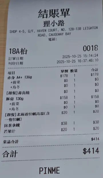 ✨️今次介绍和推荐一间位于港岛区的日本涮涮锅名是狸小路北海道涮涮锅寿喜烧和牛专门店名,是一间在网上接近有一百个好评的日式餐厅,今天我们吃下午又没有订位,幸好还有最后两张枱,不用等位😊✨️今次我们两个人分别叫了两个不同的汤底试下,一个是「北海道海胆高汤」。另一个是「北海道牡蛎高汤(含一只牡犡」。个人觉得中意食和超级爱食海胆的人士必食,首先当汤底滚后先饮一淡好鲜甜的海胆汤再吃一口海胆肉🤣超完美。牡蛎汤一水滚就要即食只牡蛎先,咁食先较大只😅否则过火就缩水了。✨️今次我们叫了两款不同的北海道十胜产黑毛和牛套餐,一个是「霜降A4+ 190克」。另一个是「顶级西冷A5 190克」。个人觉得霜降A4+肉层比较结实。顶级西冷A5真系好食好多,因为食落去油份好多,入口有即溶的感觉😍真系食到质素出黎,但就比较昂贵少少🥳一分钱一分货❤️再者,餐厅介绍顶级西冷A5是稀有的部份😱所以真系值得试下💯赤身我地今次就冇食到,不过餐厅介绍是肉质比较瘦,油花少,牛肉味较重。下次如果再黎食就赤身A4+🥳✨️和牛套餐仲有配菜,乌冬,如果再唔够饱就可以额外追加嘢食,例如:「乌冬,䐁五花,豚肩等」。下次我应该要追加䐁肉,试下他们的豚肉质素又如何🤣🤣到时再分享食评给大家😍✨️最后服务员见大家食哂就自动上埋甜品,跟和牛套餐包既,就是朱古力味既蛋卷一个🤭正😍✨️餐厅有送饮品但要赞好(Like)再加出故事帖子(Story Post)就有得送,今次我就叫了巨峰葡萄梳打,解下口渴🤭反正免费不用钱😝📍狸小路北海道涮涮锅、寿喜烧、和牛专门店📍礼顿道128-138号希云大厦地下4号舖👣铜锣湾港铁站F1出口步行10分钟就到啦🥰…查看更多