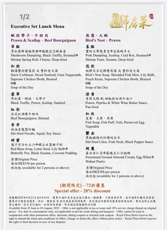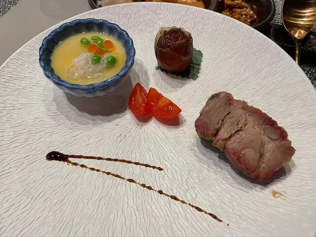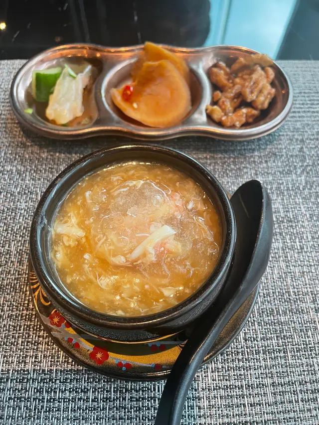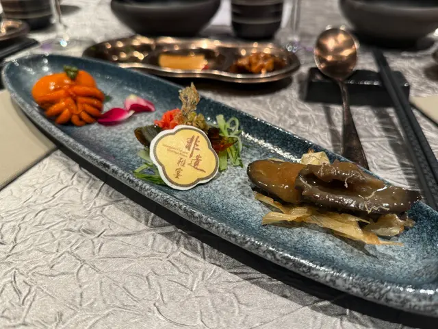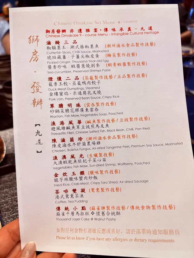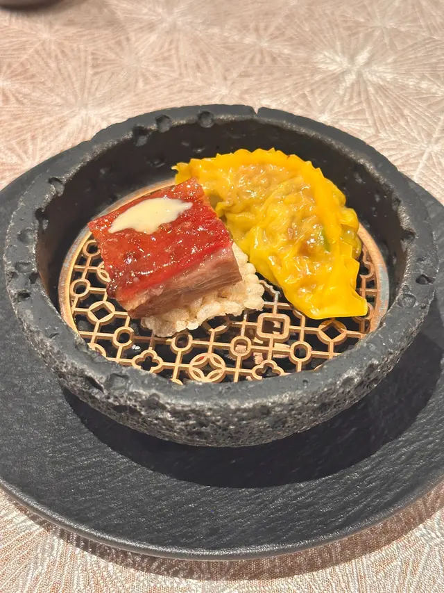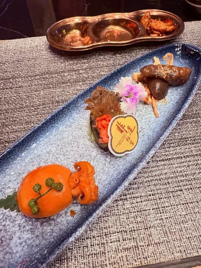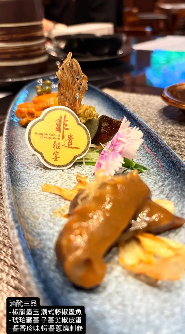 想同大家介紹前排中秋節🌝係帝京酒店嘅獅房菜食左餐好好食嘅中菜🤪佢有個獅房發辦嘅course menu,每位$988但有限時買一送一優惠,所以除番開都幾抵🫢呢個係中式嘅omakase, 有8道菜,主題就係「非遺雅宴·傳味承真」大廚將香港唔同嘅非遺製作技藝加左落菜式度,每一道菜都食得出係用心設計,好有驚喜🤭另外餐廳嘅服務都好好😌未齊人嘅時候會準備啲小食比客人食住先🤪🔻▪️滷醃三品分別有潮式藤椒墨魚、子薑尖椒皮蛋同埋蝦醬蔥燒刺參,三款入面最中意尖椒皮蛋,好開胃;另外藤椒墨魚好彈牙,有少少辣辣地👍🏼🔻▪️煙燻二品賣相好靚,打開嘅時候仲有啲煙飄出黎🤭入面有蒸籠鴨肉餃子同埋米通腐乳叉燒😆兩樣都好食,叉燒特別出色,好juicy, 同埋厚切好正😊🔻▪️翠膽明珠即係砂鍋菜膽花膠廣東雲吞,雲吞好大粒,入面仲有花膠真係好足料,個湯都好好飲😆🔻另外仲有呢幾款我就唔逐一介紹🤗▪️陳滷菌珍 - 陳皮滷水牛肝菌農場雞▪️漁澳風光 - 大澳蝦乾魚肚杞子菜心苗▪️金炊玉饌 - 脆芋絲臘味蟹肉炒飯🔻但想講下佢嘅甜品,兩樣都好出色,有分別有茶啡雙凝,即係港式鴛鴦茶凍☺️賣相好吸引,布甸口感,茶味同咖啡味都好濃😛隔離果個熊貓頭🐼雖然食落好甜,但個樣真係好cute, 打卡一流!仲有傳統小點,見到個飛行棋賣相真係好驚喜,同埋覺得好有心思!入面有一件麻雀千層馬拉糕同埋懷舊合桃酥🤭好出色…查看更多