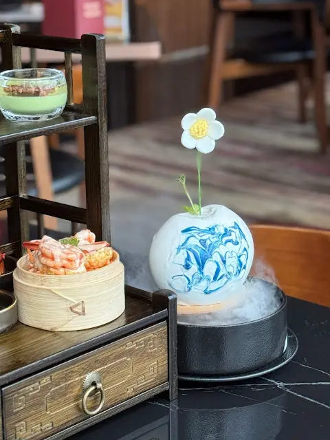 金秋正是食蟹的好季節。今年大閘蟹迎來豐收,包括安娜在內的一眾蟹迷就更加期待。今年的第一餐蟹宴,是到帝京酒店,品嚐「帝京軒」與「獅房菜」聯手呈獻期間限定的「秋風蟹宴」,鮮美豐盛的蟹宴,令人覺得幸福。揭開盛宴序幕的【藝粹】有三道小品 ——「醬香大麴溏心鮑」軟糯鹹香;「生拆蟹粉小籠包」香氣四溢、濃郁味美;「蟹油元貝千絲酥」酥脆又層次豐富。【清蒸江蘇大閘蟹】原隻大閘蟹,是秋日最矜貴的儀式。選用六兩公蟹,膏豐油潤。以清蒸手法鎖住原味,蟹黃醇厚、蟹肉清甜。【鮮姬松茸蟹皇虎蝦球】虎蝦球彈牙飽滿,附以金黃色的蟹粉提鮮,令人食指大動。再佐以煎香的姬松茸,山海之鮮在舌尖交融。【菊花五蛇燴花膠】不時不食,秋天也是食蛇進補的季節。這道五蛇燴花膠,湯底醇厚,蛇肉與花膠綿滑滋補,暖意沁人。配上清熱明目的當造秋菊,不但美味,也是補身妙品。不吃蛇的話,也可以選擇【蟹肉花膠燴燕窩】。【蝦籽魚唇軟骨伴鮮鹿茸菌】魚唇軟骨以慢火烹製,保留豐富膠質,外酥內嫩。鮑汁菌香與蝦籽鹹鮮交織,口感豐盈。【龍蝦湯蟹餅五穀苗】以萵筍粒、炸米及蟹肉混合製成的蟹餅非常脆香。龍蝦湯溫潤中帶辣韻,尾韻悠長。再配上非常搭調的肥美帶子,整道菜的味道層次豐富又平衡。最後的甜品,是【金粉流星可可脆脆】配上一杯【薑茶金薯芋圓小丸子】,驅寒暖胃。一席蟹宴,滿口秋意,正是季節最豐美的饋贈。這頓「秋風蟹宴」不僅是味覺的享受,更是對秋天的詩意詮釋。很開心品嚐到一趟美味難忘的秋日回憶。每名食客還會獲贈一罐蟹皇溏心鮑,將美味帶回家。…查看更多