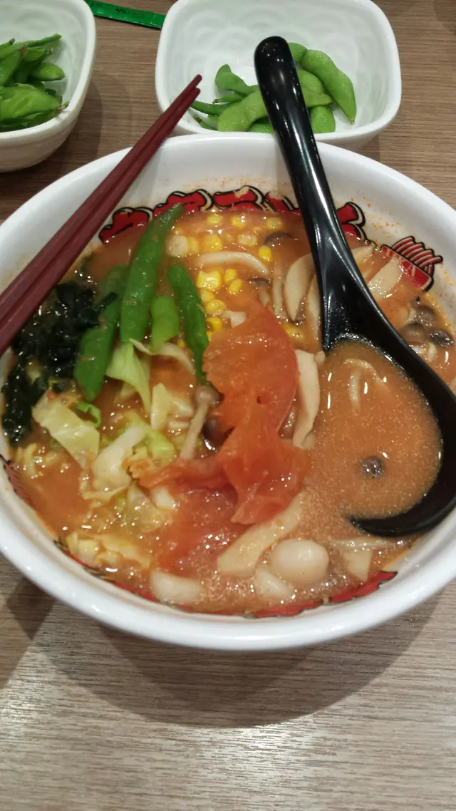 Wr found this the only place in the Olympic shopping mall with no queue waiting outside at dinner time, so wr entered the place since we were freaking hungry.i ordered a bowl of tomato yasai udon which i like the most in any udon restaurant, plus a plate of edamame. The food served quite fast and soon came the edamame, followed by the udon.The edamame was like normal, nth special, but the udon was yum and surprising. Not to say the ingredients were sumptuous, the soup was so rich with tomatoes and butter, a perfect flavor for winter