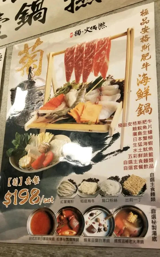 My friend and I went to a restaurant called “Lonely Hot Pot Land”(獨‧ 火鍋撚) located in Shop 14, G/F, Ngai Hing Mansion, 2-24 Pak Po Street, Mong Kok旺角白布街2-24號藝興大廈地下14號舖.The restaurant is decorated in modern style with a Chinese touch to it.There are 3 hotpot dinner sets for customers to choose from.“Plum flowers” (梅)HKD$118/person with chicken & pork ..“Orchid” (蘭) HKD$158/personwith Angus beef,chicken & dumplings..“Chrysanthemum” (菊)HKD$198/personwith seafood & Angus beefThe one person hotpot ensure the hygiene during the Covid-19 pandemic!!4 secret recipes hotpot soup bases for customers to choose from:.-Taiwanese Satay spicy hotpot base.-Spicy hotpot base.-tofu white soup base.-double boiled soupWe ordered the seafood &Angus beef sets and chose the Taiwanese Satay hotpot base & Spicy hotpot base respectively...The “Taiwanese Satay spicy hotpot base”(台灣古早味沙嗲麻辣鍋) is very rich, intense spices flavours !!!Very flavourful!!Highly recommended!!There are oysters, shrimp, crispy grass carp, squid, crab stick Angus beef in the set.The vermicelli is al dente and springy!!Love the corn which is sooooooo sweettttttt!!…查看更多