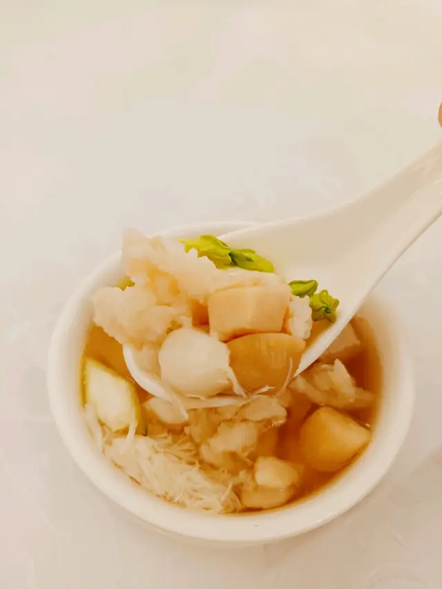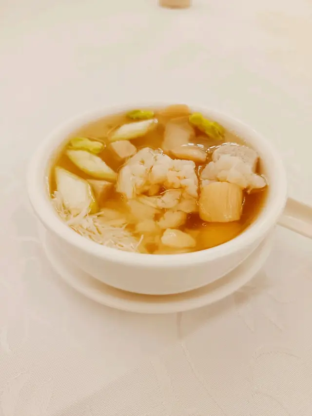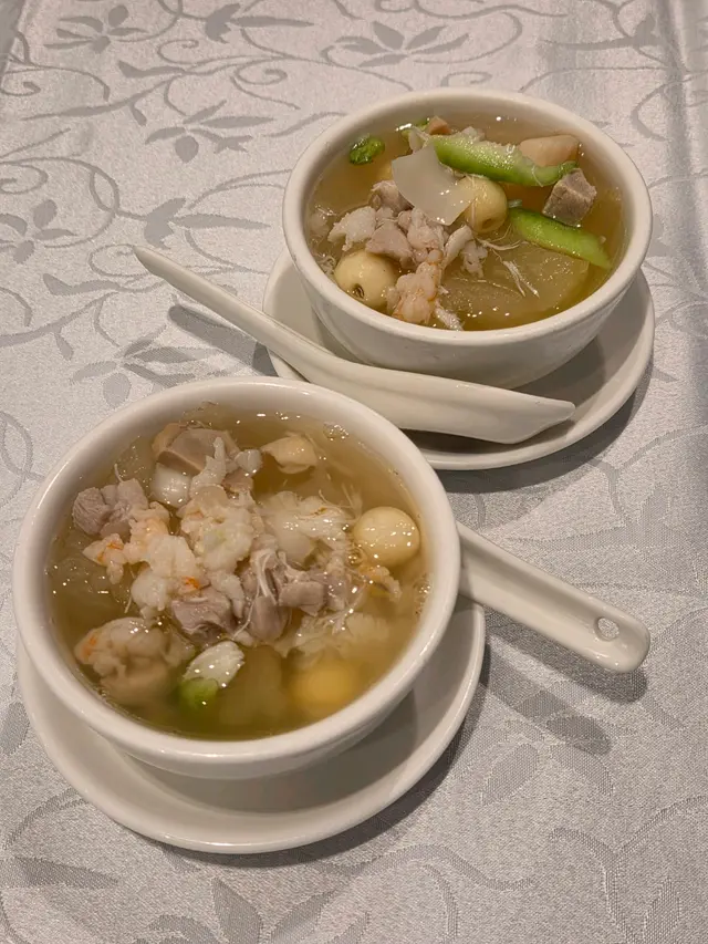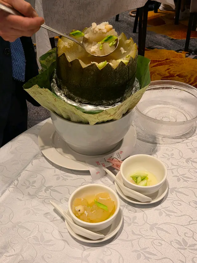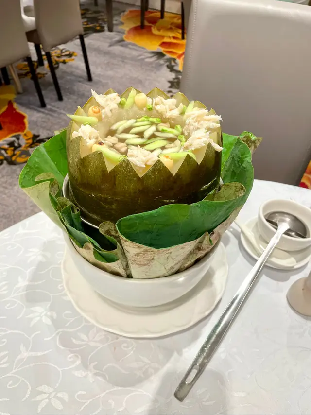 早幾日和朋友講起夏天吃冬瓜最好時節,不約而同說約去酒樓吃冬瓜盅啦!這間酒家推出幾款新菜式。夏日精選~~~海皇八寶冬瓜盅🥣是一道經典的粵菜,以冬瓜為容器,內里燉煮多種海鮮和珍貴食材,味道鮮美清雅,非常適合夏季食用。冬瓜本身清淡多汁,經過燉煮後釋放出自然的甜味,與海鮮的鮮味完美融合,湯底清澈而甘甜。每個冬瓜盅都要燉煮十個鐘以上,加入豬骨雞湯瑤柱慢火燉煮的。配料有夜香花、蝦仁、金華火腿、柱具、冬菇、蓮子、瘦肉等。冬瓜肉燉至半透明,入口即化,而海鮮食材則帶來濃郁的海洋鮮味,層次豐富。還有冬瓜有消暑利水的功效,搭配海鮮的高蛋白,整體是一道既美味又養生的菜餚。晚餐超級大優惠~至尊自選組合我們還點選組合套餐——清蒸沙巴龍躉🐟配玉桃軒小炒皇🫛清蒸沙巴龍躉🐟採用清蒸的方式烹制,突出魚肉的鮮嫩與原汁原味。沙巴龍躉肉質緊實細膩,油脂適中,清蒸後口感嫩滑如豆腐入口即化,帶有石斑魚特有的彈性和膠質。而魚皮富含膠原蛋白蒸後軟糯黏滑,清蒸做法能最大程度保留魚的原味,無需過多調料搭配少許蒸魚醬油咸鮮提味,但不會掩蓋魚的清甜味。玉桃軒小炒皇🫛是一道經典的粵式小炒,以鮮、香、爽、脆為特色,集合多種海鮮和蔬菜快火爆炒而成。材料有韭菜花、蝦仁、蝦干、蝦米、魷魚、腰果等,這裡最特別就是有帶子,令這度菜味道層次更加提鮮。廚師加入XO醬和生抽、蠔油、糖高溫快炒讓食材表面略帶焦香,鑊氣足火候夠超級惹味又濃郁,是粵式小炒的靈魂。桂花糕🌼飯後甜品晶瑩剔透的桂花糕,清香撲鼻淡淡桂花香,味道清甜爽口又潤喉。查看更多