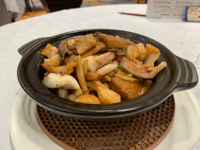 位於觀塘鱷魚恤的玉桃軒酒家,以傳統粵菜和實惠價格深受街坊喜愛。片皮鴨自選組合 $388京烤片皮鴨片皮鴨烤至棗紅色,外皮酥脆甘香,鴨肉保持嫩滑。用薄餅皮包裹,搭配甜麵醬、青瓜和京蔥,口感豐富。鮮蟲草花蒸雞 雞肉嫩滑,蟲草花獨特的香氣滲透肉中,養生又美味。海皇野菌豆腐煲 $168豆腐煲用料豐富,包含魷魚、帶子等多種海鮮,以及多款野菌。豆腐嫩滑,吸盡海鮮與野菌的精華,醬汁濃淡適中,非常適合配飯。紅豆沙作為贈送的甜品,紅豆沙絕不馬虎。煮至起沙的紅豆香甜綿密,加入陳皮增添香氣,甜度恰到好處,為這頓傳統粵菜畫上完美句號。查看更多