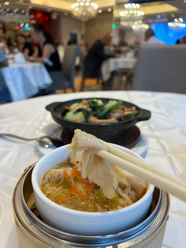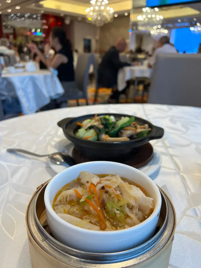 鱷魚恤中心嘅玉桃軒酒家環境寬敞明亮,桌椅舒適,整潔有序,帶有傳統中式酒樓嘅典雅感。鱷魚恤中心嘅玉桃軒酒家環境寬敞明亮,裝修帶有典雅中式風格,空間安排舒服,座位唔擁擠。牆上掛有中式畫作配襯柔和燈光,增添溫馨氣氛,適合家庭聚餐或朋友聚會。整體感覺整潔舒適,好有傳統酒樓嘅味道。餐廳氣氛輕鬆,適合朋友或家人聚餐。點心籠仔份量足,色香味俱全,如鮮蝦餃皮薄餡多汁,腐皮卷外脆內嫩,肉丸滋味濃郁,整體口感層次豐富。食材新鮮,味道地道,價格合理,係觀塘區享受地道粵菜點心嘅好選擇。查看更多