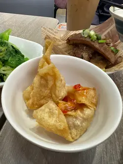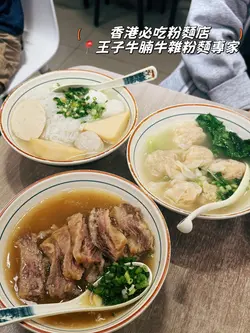 途经乐道嘅 - 王子牛腩牛杂粉面专家,依间咁抢眼嘅橙色招牌,系尖沙咀区性价比高又好味抵食嘅王子面,已经第二次帮衬㗎啦~原来依度有埋充电宝呢项服务,又真系好方便,唔使担心手机冇电,好贴心。嚟香港旅游当然是光顾一下小店,吃一些地道美食,感受下香港风味~煲仔五香牛腩饭 $71一上枱热辣辣,用咗铁锅盛载,牛腩味道浓郁,肉质嫩滑,弹牙爽口,好耐都无食过美味嘅牛腩,酱汁带咸鲜味,拌饭一流,米饭吸入汤汁,食起嚟更好味。崩沙腩面 $68隔咗好耐无食过美味嘅崩沙腩,牛味浓郁,肉质鲜嫩,弹牙爽口,汤底鲜味十足,面条吸入汤汁,食起嚟更好味。四宝汤丸 $56拣选净汤丸,一碗有齐炸鱼片头、手打鱼蛋、鲜猪肉丸、潮汕扎肉及鲜墨鱼丸,爽口弹牙,新鲜手打丸,汤底清甜,配翠绿鲜爽嘅生菜,大满足!鲜虾云呑 $40鲜虾云吞都好大粒,皮薄馅多,份量十足,虾肉弹牙,食起嚟好爽口,汤底清甜顺喉。丝袜奶茶 (+$5)奶茶系香港最具代表性嘅饮品之一!呢度嘅奶茶茶味香浓,口感顺滑,再配上粉面,简直系地道香港人嘅日常。冻柠檬茶 (+$5) 及 热柠檬水红茶味甘,柠檬清香,冰冻爽口,热柠檬水解渴解腻。…查看更多